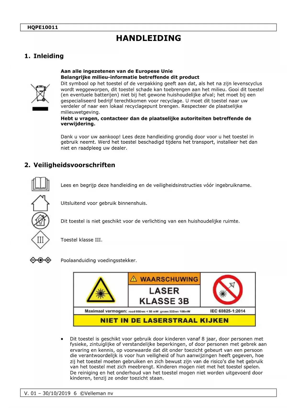 HQPE10011 - Niet gecategoriseerd VELLEMAN - Gratis gebruiksaanwijzing en handleiding