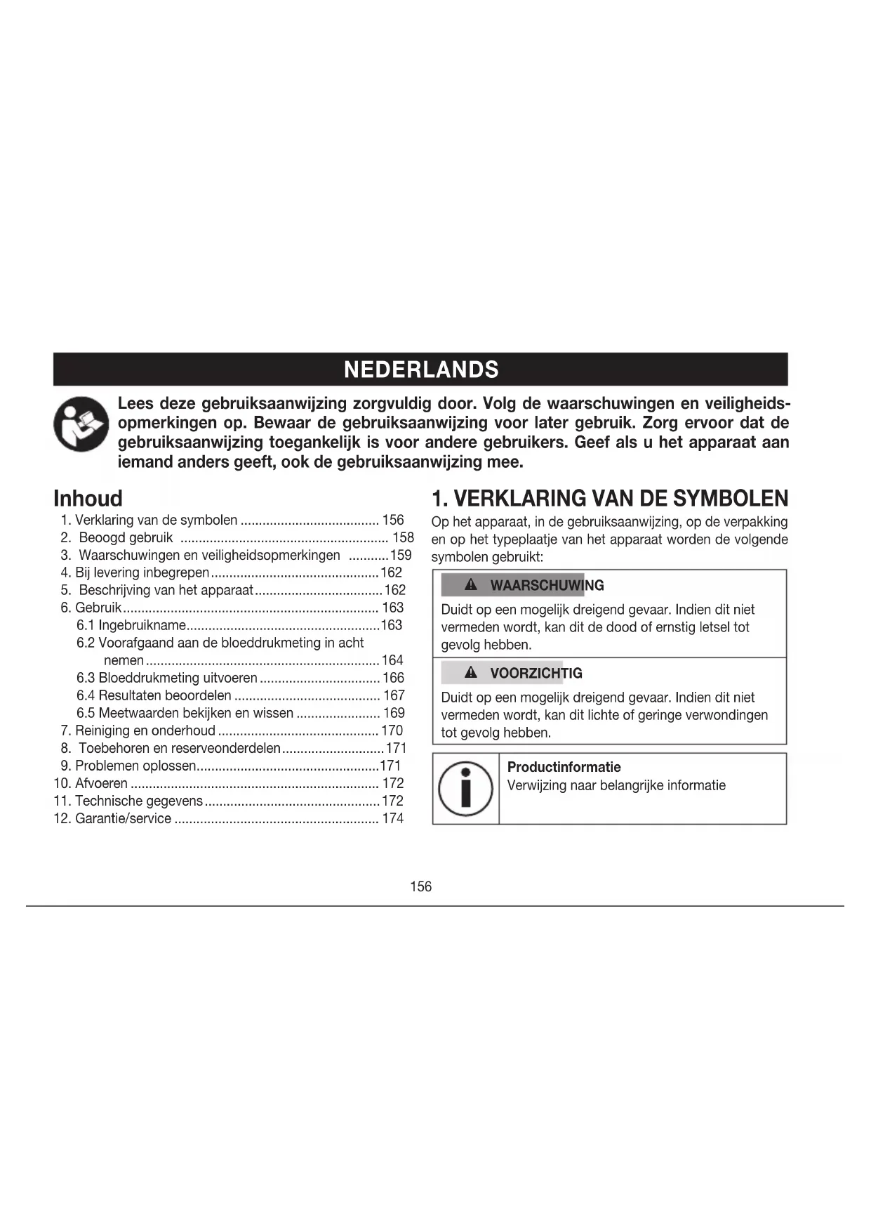 Bloeddrukmeter voor de bovenarm Gebruiksaanwijzing ............156