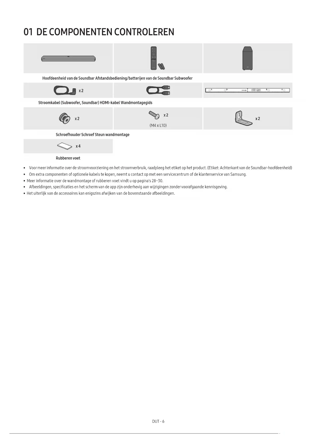 - Het uiterlijk van de accessoires kan enigszins afwijken van de bovenstaande afbeeldingen.DUT - 7 02 PRODUCTOVERZICHT Bovenpaneel van de Soundbar