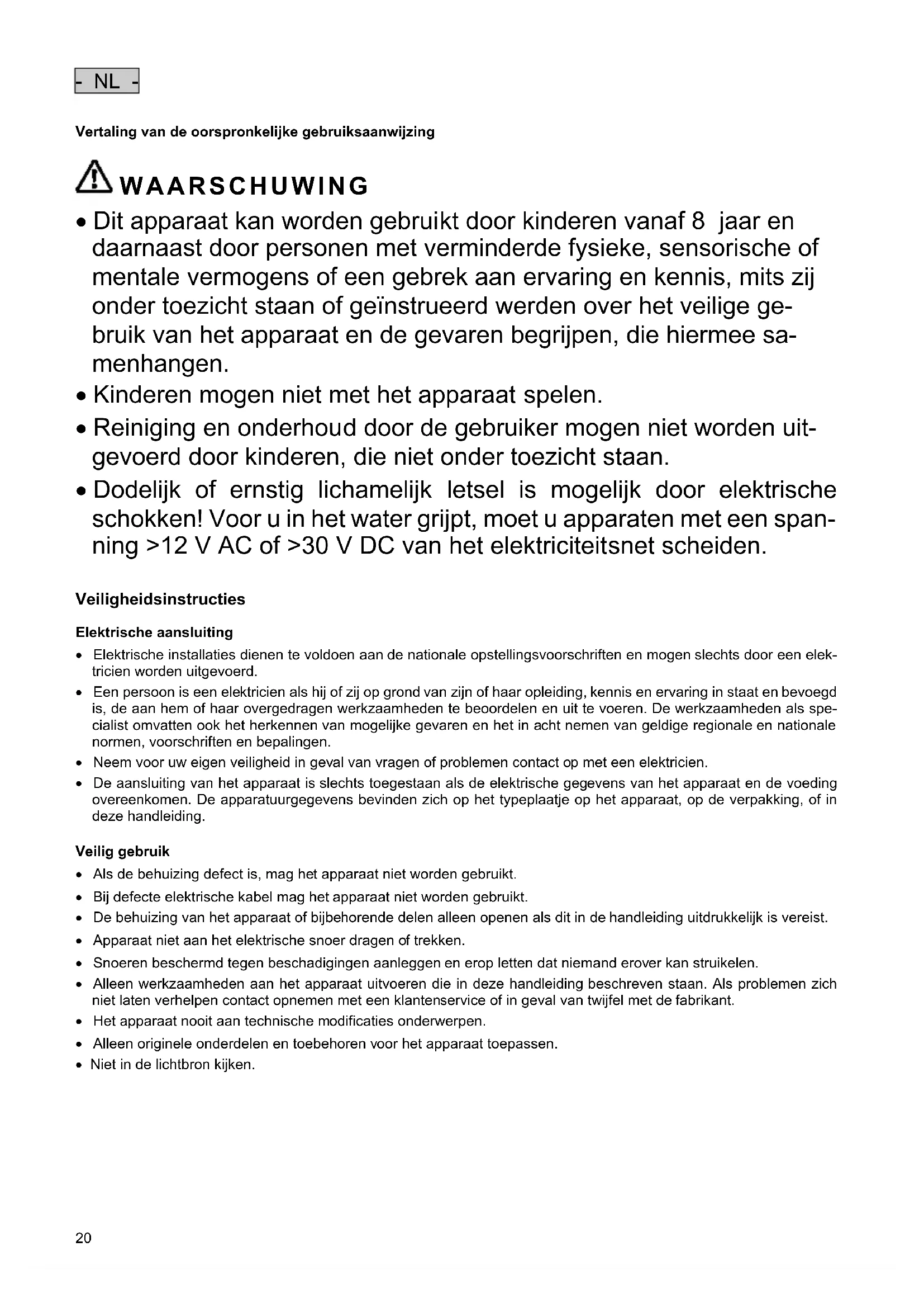 - Reiniging en onderhoud door de gebruiker mogen niet worden uit- gevoerd door kinderen, die niet onder toezicht staan.