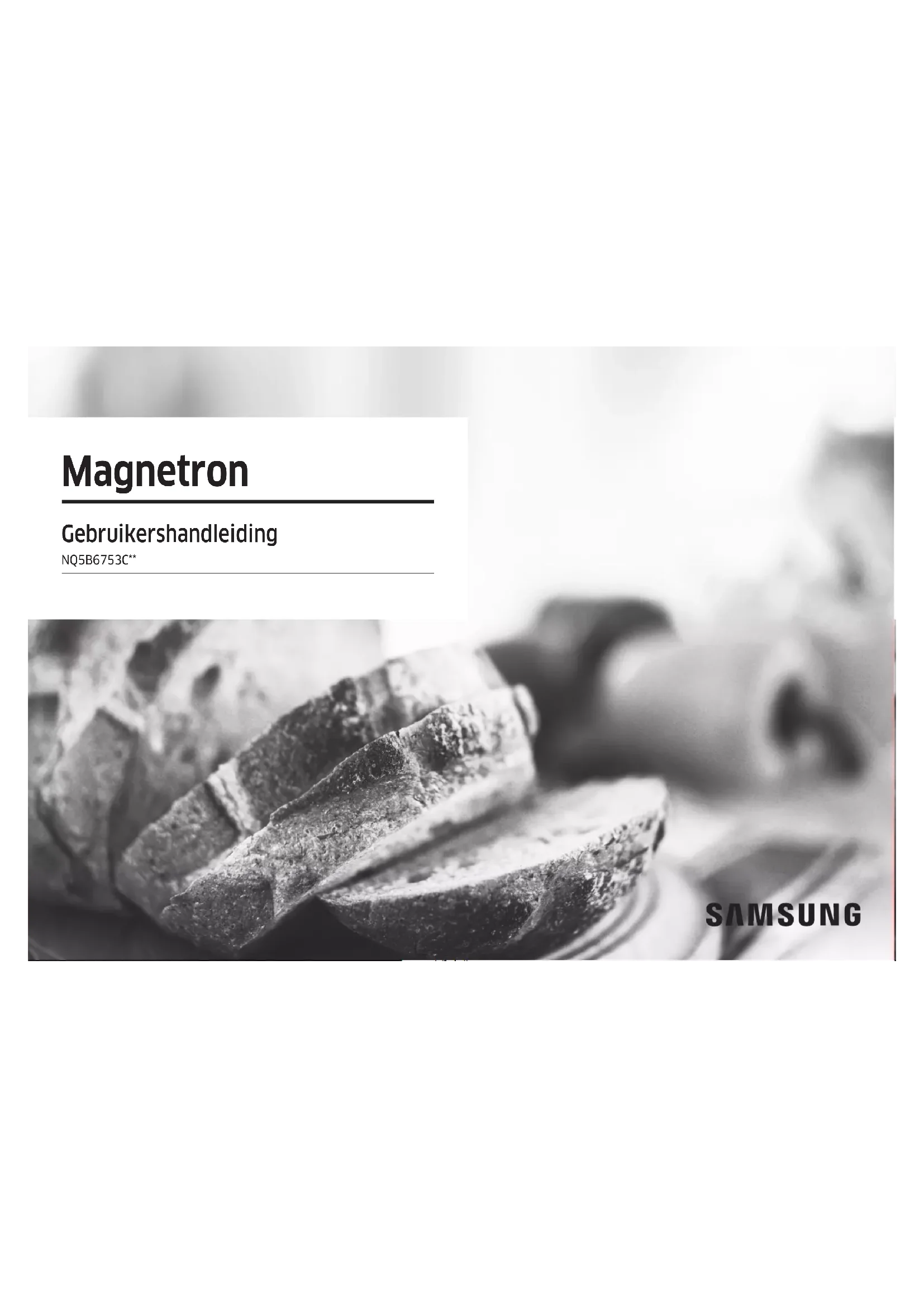 - (opłata według taryfy operatora) http://www.samsung.com/pl/support/ ROMANIA 0800872678 - Apel gratuit *8000 - Apel tarifat în reţea www.samsung.com/ro/support SERBIA 011 321 6899 www.samsung.com/rs/support SLOVAKIA 0800 - SAMSUNG (0800-726 786) www.samsung.com/sk/support LITHUANIA 8-800-77777 www.samsung.com/lt/support LATVIA 8000-7267 www.samsung.com/lv/support ESTONIA 800-7267 www.samsung.com/ee/support SLOVENIA 080 697 267 (brezplačna številka) www.samsung.com/si/support KOSOVO 038 40 30 90 www.samsung.com/support DG68-01401A-03Magnetron Gebruikershandleiding NQ5B6753C**2 Nederlands Inhoud Inhoud Veiligheidsinstructies 3 Belangrijke veiligheidsinstructies 3 Algemene veiligheid 7 Voorzorgsmaatregelen voor werking van de magnetron 8 Beperkte garantie 9 Denitie van de productgroep 9 Correcte verwijdering van dit product (elektrische & elektronische afvalapparatuur) 9 Installatie 10 Geleverde onderdelen 10 Installatie-instructies 11 Installatie in de kast 11 Voor u begint 14 Bedieningspaneel 14 Initiële instellingen 14 Zijrekken 15 Over microgolfenergie 16 Kookgerei voor de magnetron 16 Gebruik 18 Ovenstanden 18 Magnetronstanden 20 Speciale functie 22 Automatisch koken 23 Automatisch ontdooien 24 Snel bereiden 24 Timer 25 Reinigen 25 Instellingen 26 Vergrendelen 28 Slim koken 28 Automatisch koken 28 Automatisch ontdooien 31 Snel bereiden 32 Handmatige bereiding 33 Snel en eenvoudig 44 Onderhoud 45 Reinigen 45 Probleemoplossing 46 Controlepunten 46 Onderdelen vervangen (reparatie) 46 Voorzorgsmaatregelen bij een langere periode zonder gebruik 46 Informatiecodes 51 Technische specicaties 51 Bijlage 52 Aankondiging met betrekking tot open source 52Nederlands 3 Veiligheidsinstructies Veiligheidsinstructies BELANGRIJKE VEILIGHEIDSINSTRUCTIES LEES DE AANWIJZINGEN ZORGVULDIG DOOR EN BEWAAR DEZE ZODAT U ZE IN DE TOEKOMST KUNT RAADPLEGEN. WAARSCHUWING: Als de deur of de afsluitstrippen zijn beschadigd, mag u de oven niet gebruiken voordat deze is gerepareerd door een gekwaliceerde monteur. WAARSCHUWING: Onderhoud en reparaties waarbij de behuizing, die bescherming biedt tegen blootstelling aan microgolven, wordt verwijderd, mogen alleen worden uitgevoerd door een gekwaliceerde monteur. Voor anderen is dit levensgevaarlijk. WAARSCHUWING: Vloeistoffen en andere gerechten mogen niet worden verwarmd in een afgesloten verpakking, aangezien deze kan exploderen. WAARSCHUWING: Laat de oven alleen zonder toezicht door kinderen gebruiken nadat u duidelijke instructies hebt gegeven en u ervan overtuigd bent dat het kind in staat is de oven op een veilige manier te bedienen en begrijpt wat de gevaren zijn van onjuist gebruik. Dit apparaat is uitsluitend bedoeld voor huishoudelijk gebruik en niet voor: