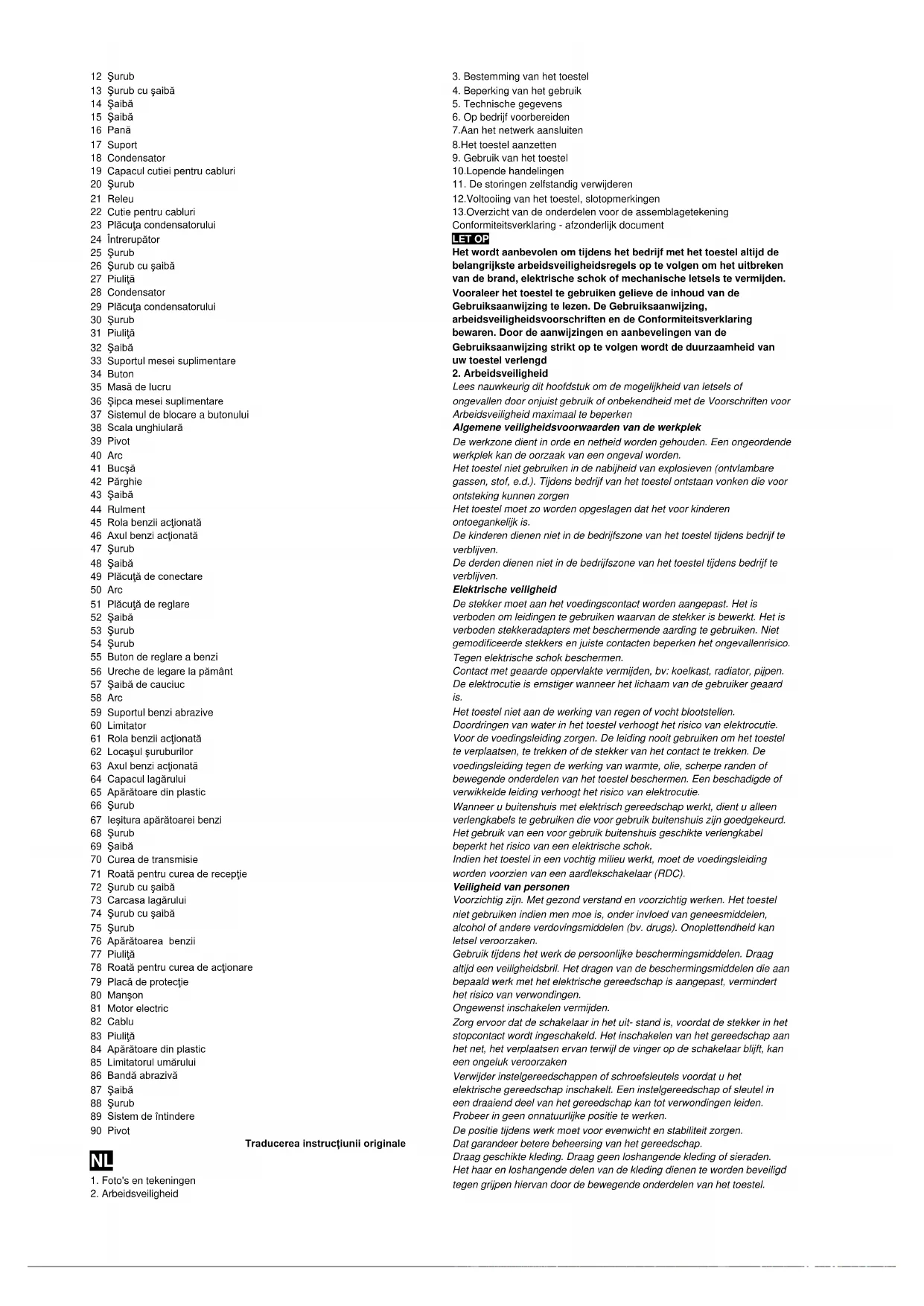 12.Voltooiing van het toestel, slotopmerkingen 13.Overzicht van de onderdelen voor de assemblagetekening Conformiteitsverklaring - afzonderlijk document LET OP Het wordt aanbevolen om tijdens het bedrijf met het toestel altijd de belangrijkste arbeidsveiligheidsregels op te volgen om het uitbreken van de brand, elektrische schok of mechanische letsels te vermijden. Vooraleer het toestel te gebruiken gelieve de inhoud van de Gebruiksaanwijzing te lezen. De Gebruiksaanwijzing, arbeidsveiligheidsvoorschriften en de Conformiteitsverklaring bewaren. Door de aanwijzingen en aanbevelingen van de Gebruiksaanwijzing strikt op te volgen wordt de duurzaamheid van uw toestel verlengd
