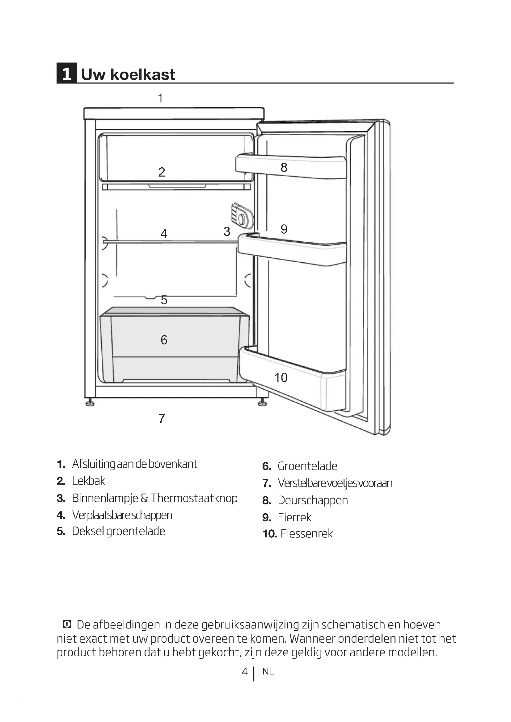 uit uw koelkast voor u deze reinigt of ontdooit. Bij het schoonmaken en ontdooien van de koelkast mogen geen stoom en stoomreinigers gebruikt