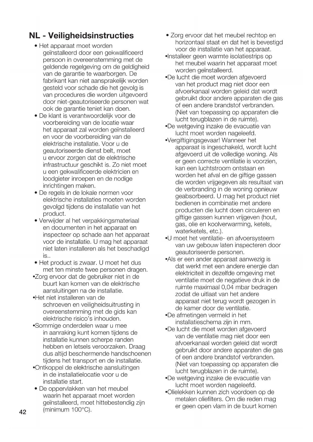- De oppervlakken van het meubel waarin het apparaat moet worden geïnstalleerd, moet hittebestendig zijn (minimum 100°C).