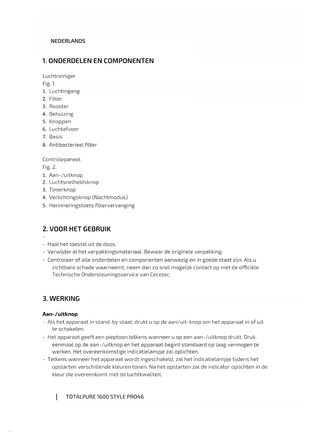 GEBRUIKSAANWIJZING TotalPure 1600 Style CECOTEC