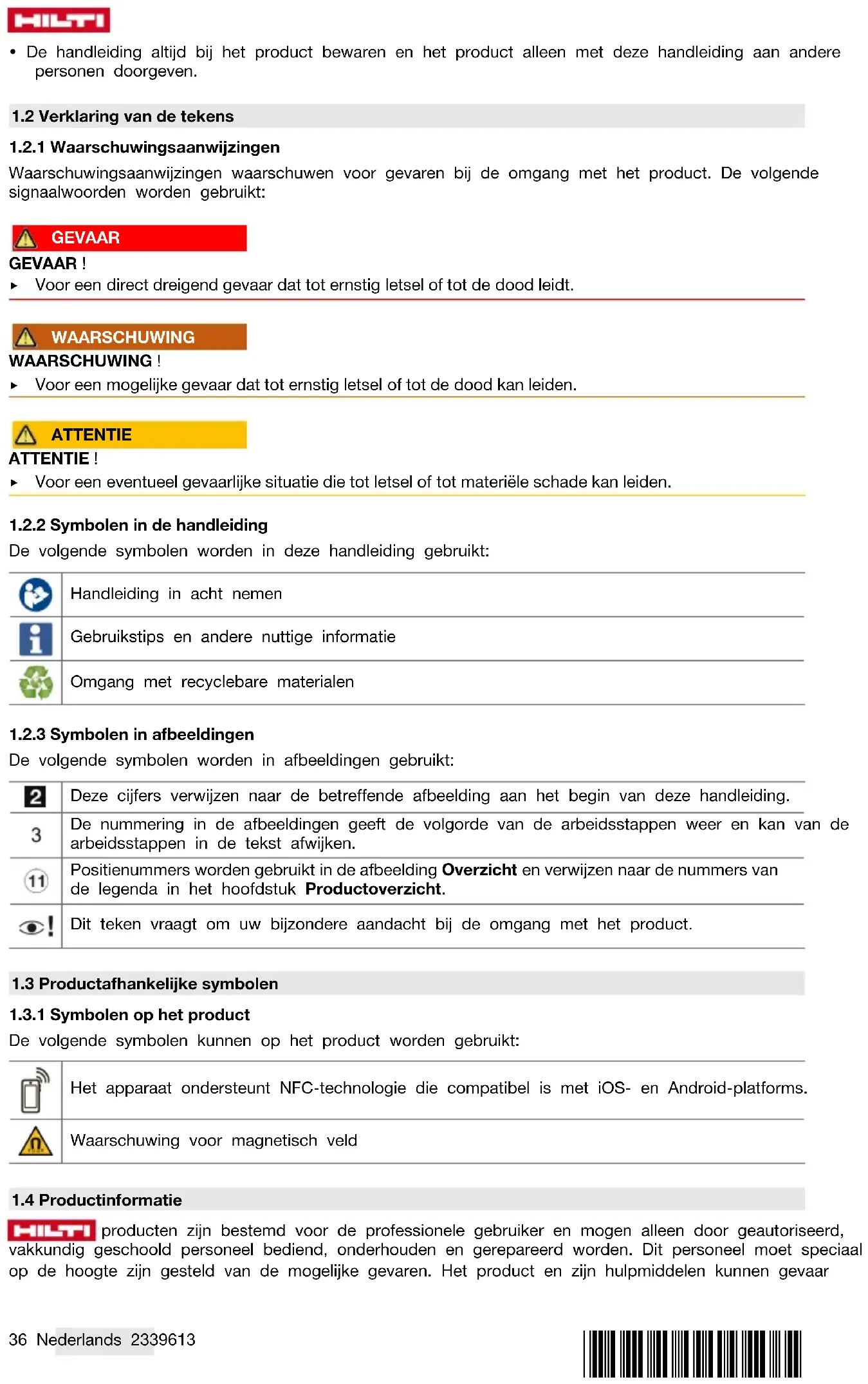1.2.2 Symbolen in de handleiding