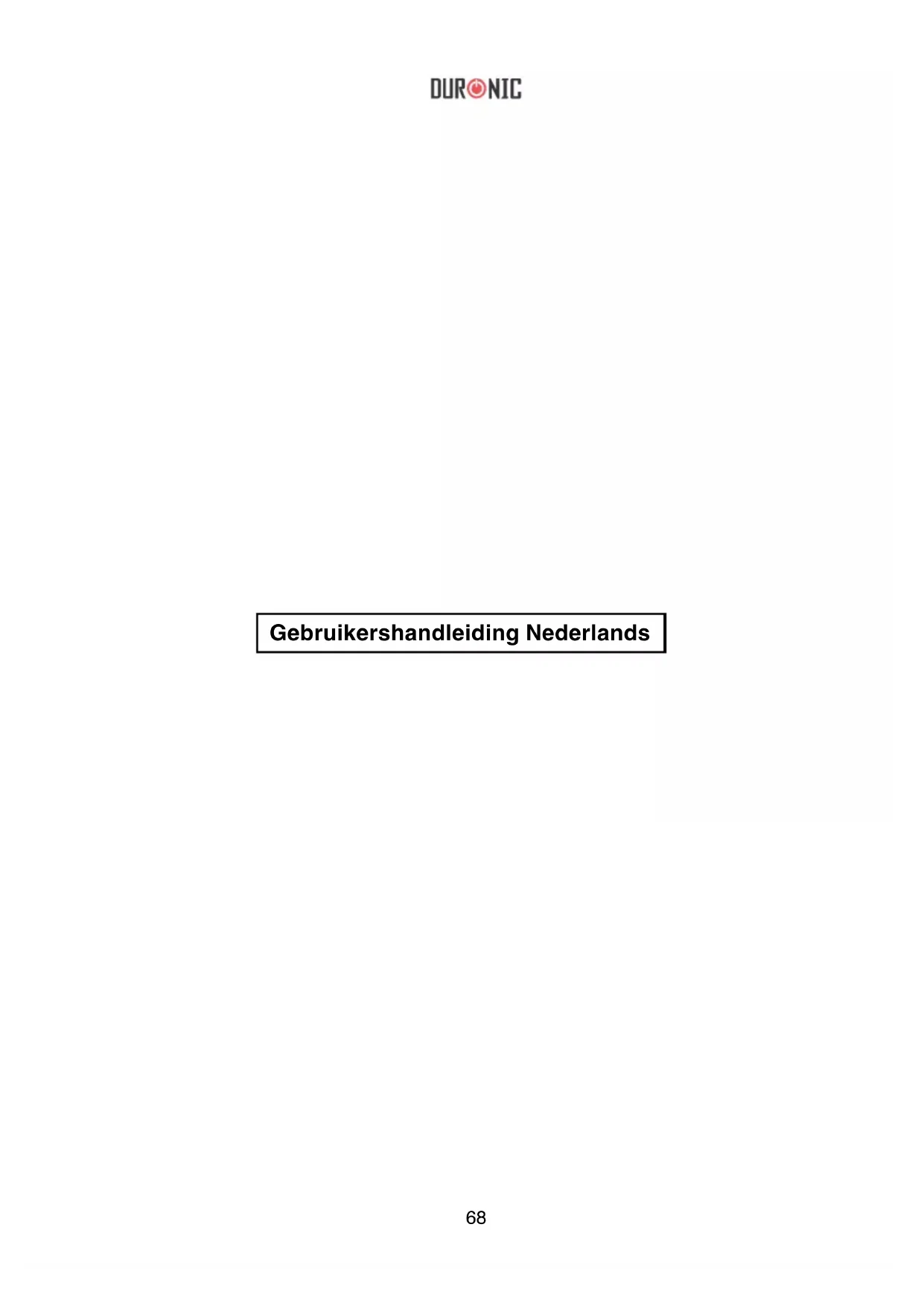 Gebruik dit apparaat niet als de stroomkabel of stekker beschadigd is. Als één van deze onderdelen beschadigd raakt, retourneer het dan naar Duronic voor onderhoud of reparatie door een professionele technicus.