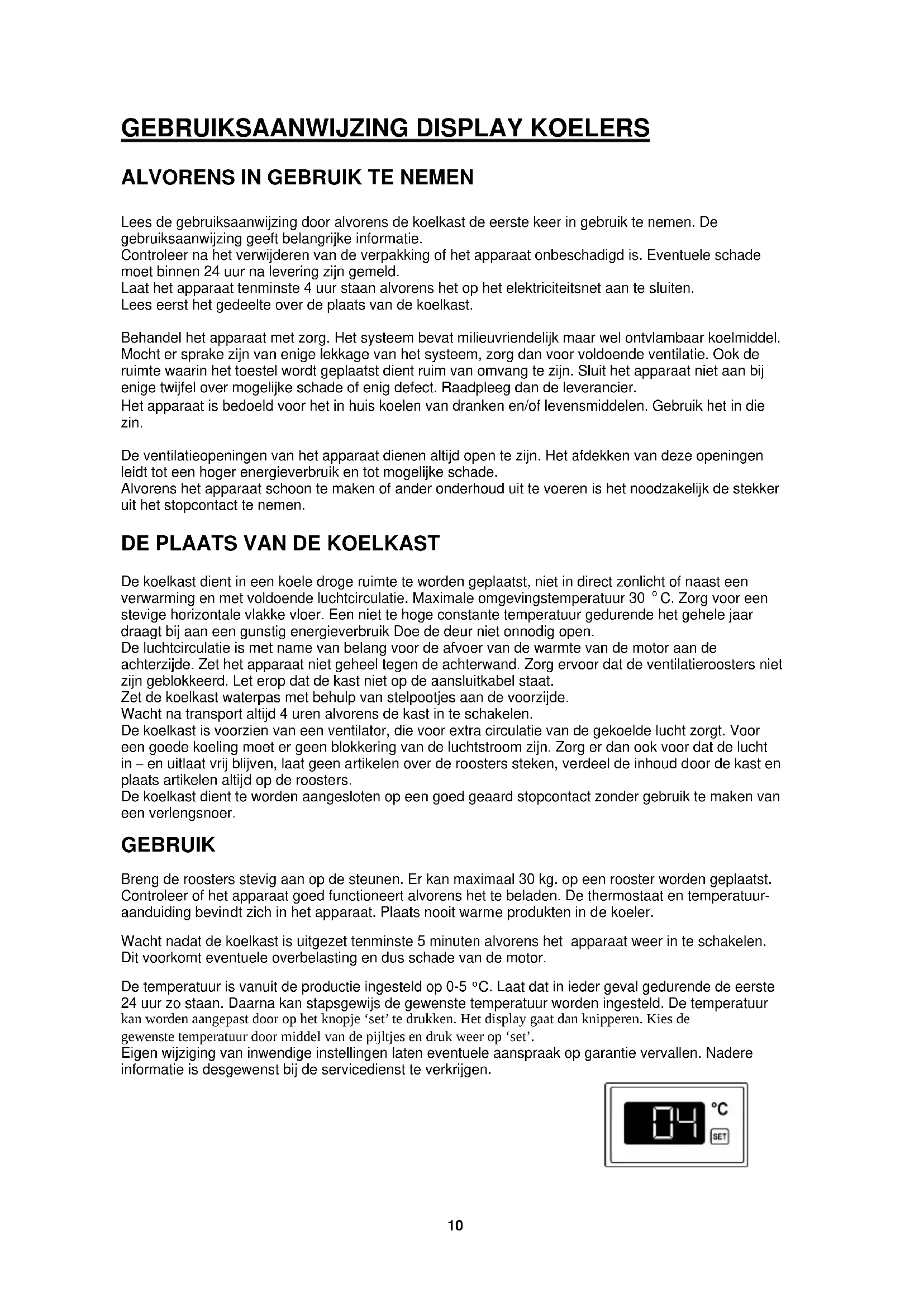 GEBRUIKSAANWIJZING DISPLAY KOELERS