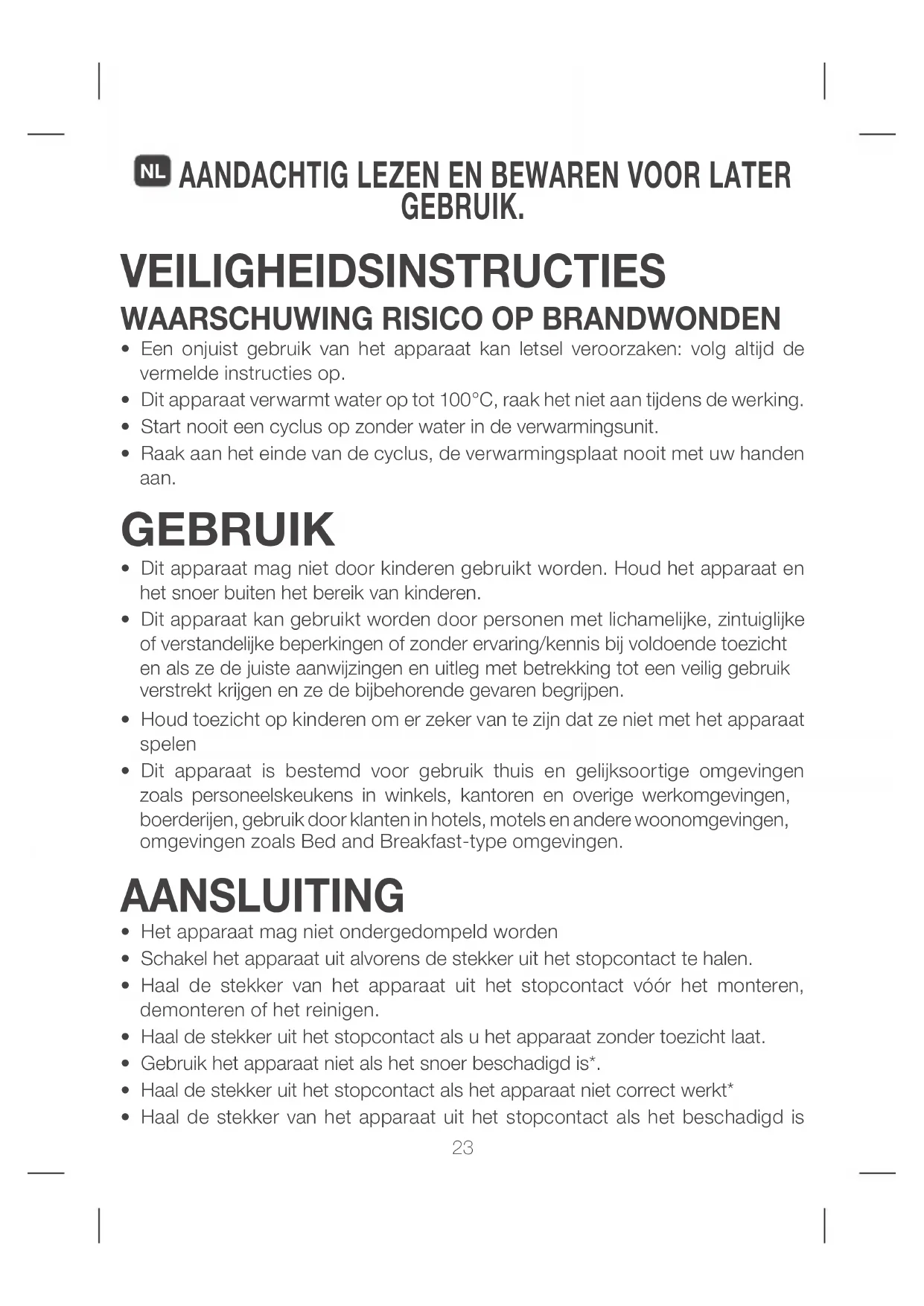 - Dit apparaat verwarmt water op tot 100°C, raak het niet aan tijdens de werking.