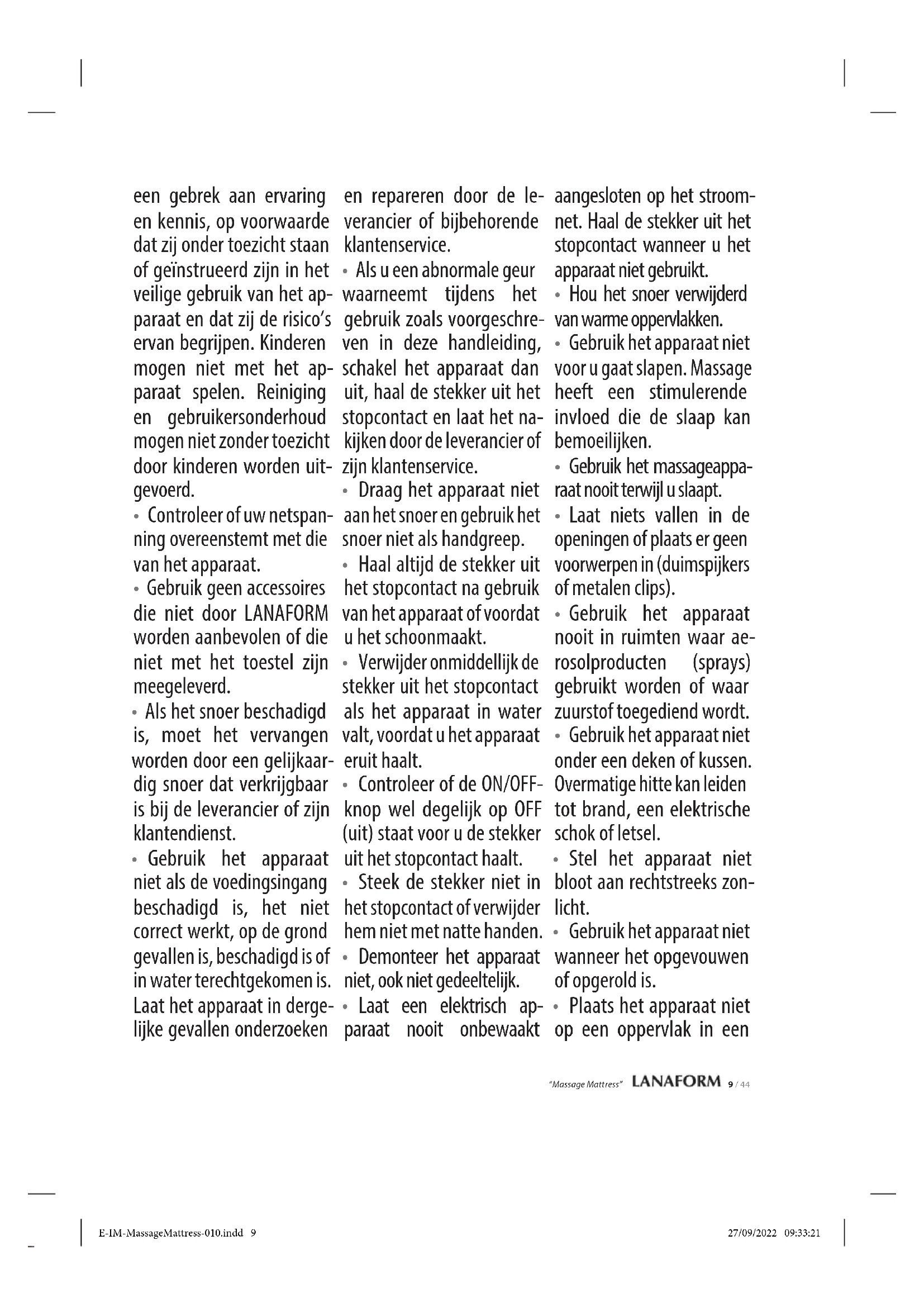 GEBRUIKSAANWIJZING Massage Mattress LANAFORM