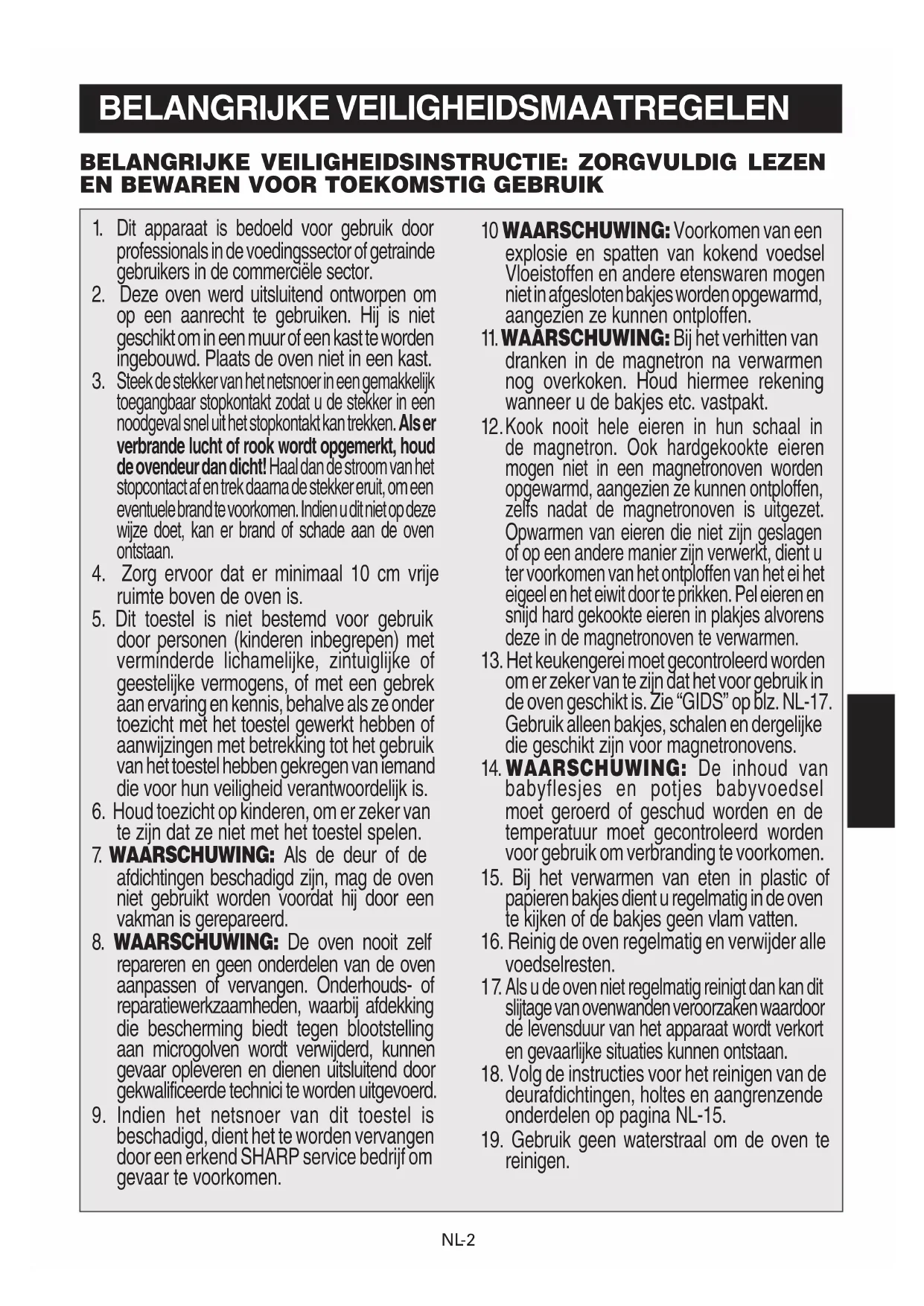 erkend SHARP onderhoudspersoneel indien de ovenlamp niet meer funktioneert. (R-7500AT)OM.indbSec2:3 2019/03/1316:45:51NL-4 Voorkomen van een explosie en spatten van kokend voedsel