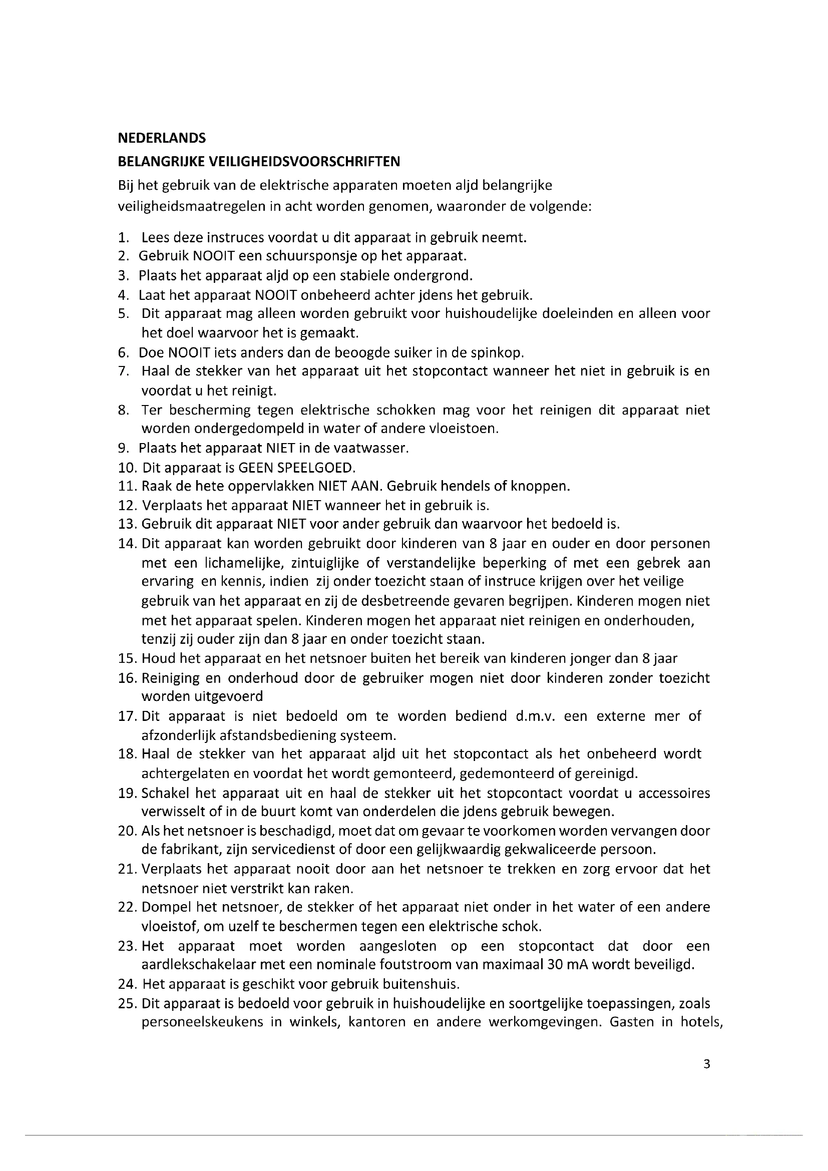 28. Het oppervlak kan tijdens het gebruik heet worden.