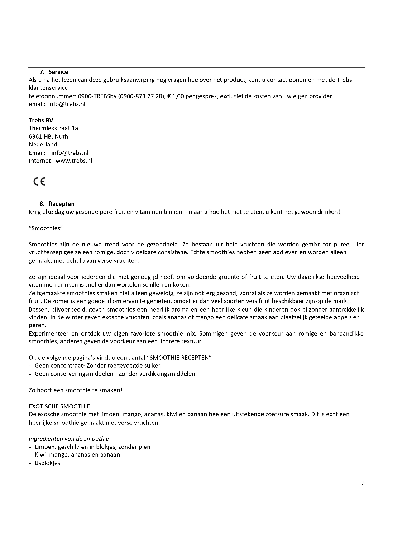 Als u na het lezen van deze gebruiksaanwijzing nog vragen heeft over het product, kunt u contact opnemen met de Trebs klantenservice: telefoonnummer: 0900-TREBSbv (0900-873 27 28), € 1,00 per gesprek, exclusief de kosten van uw eigen provider. email: info@trebs.nl Trebs BV Thermiekstraat 1a 6361 HB, Nuth Nederland Email: info@trebs.nl Internet: www.trebs.nl