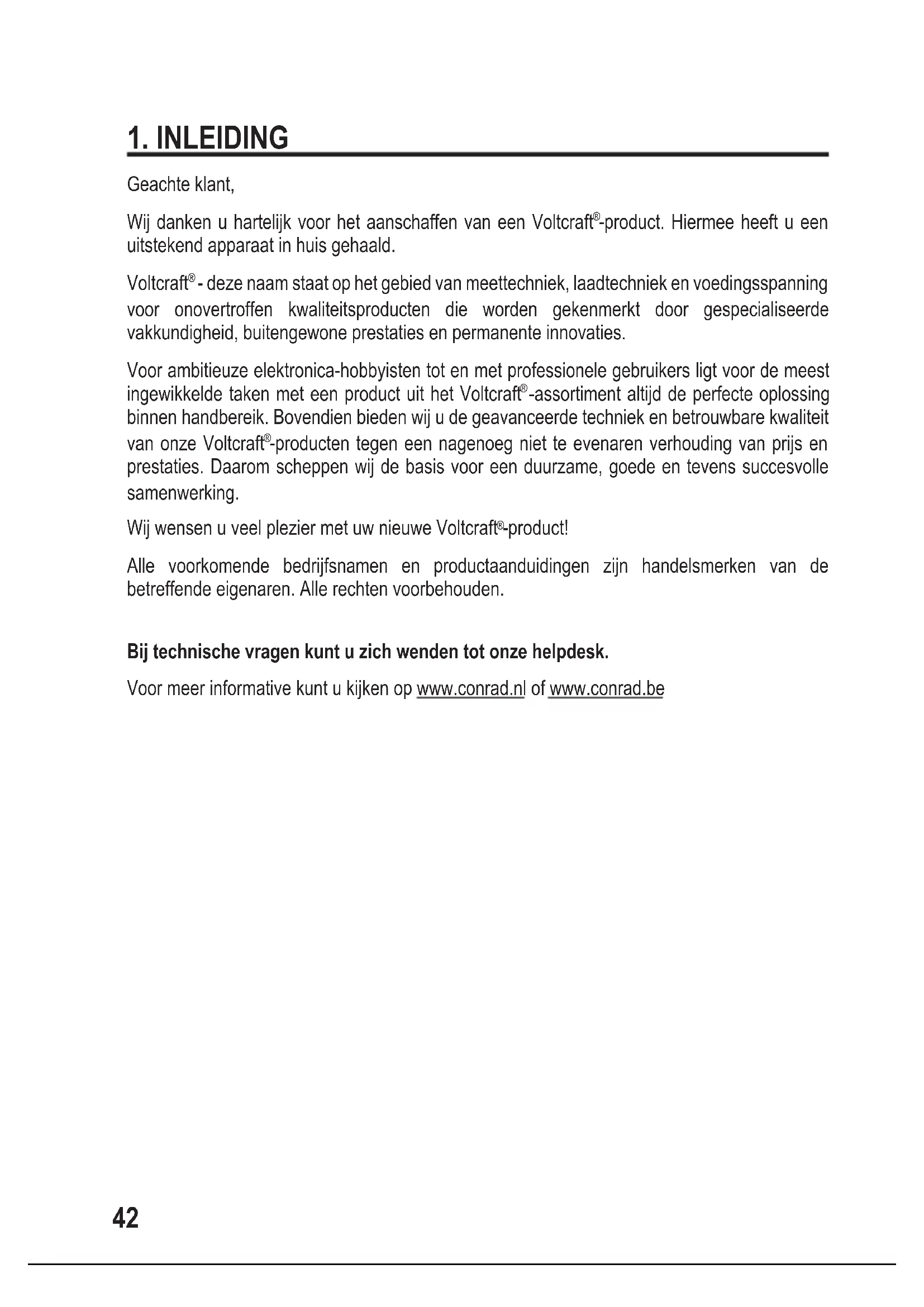 -producten tegen een nagenoeg niet te evenaren verhouding van prijs en prestaties. Daarom scheppen wij de basis voor een duurzame, goede en tevens succesvolle samenwerking. Wij wensen u veel plezier met uw nieuwe Voltcraft