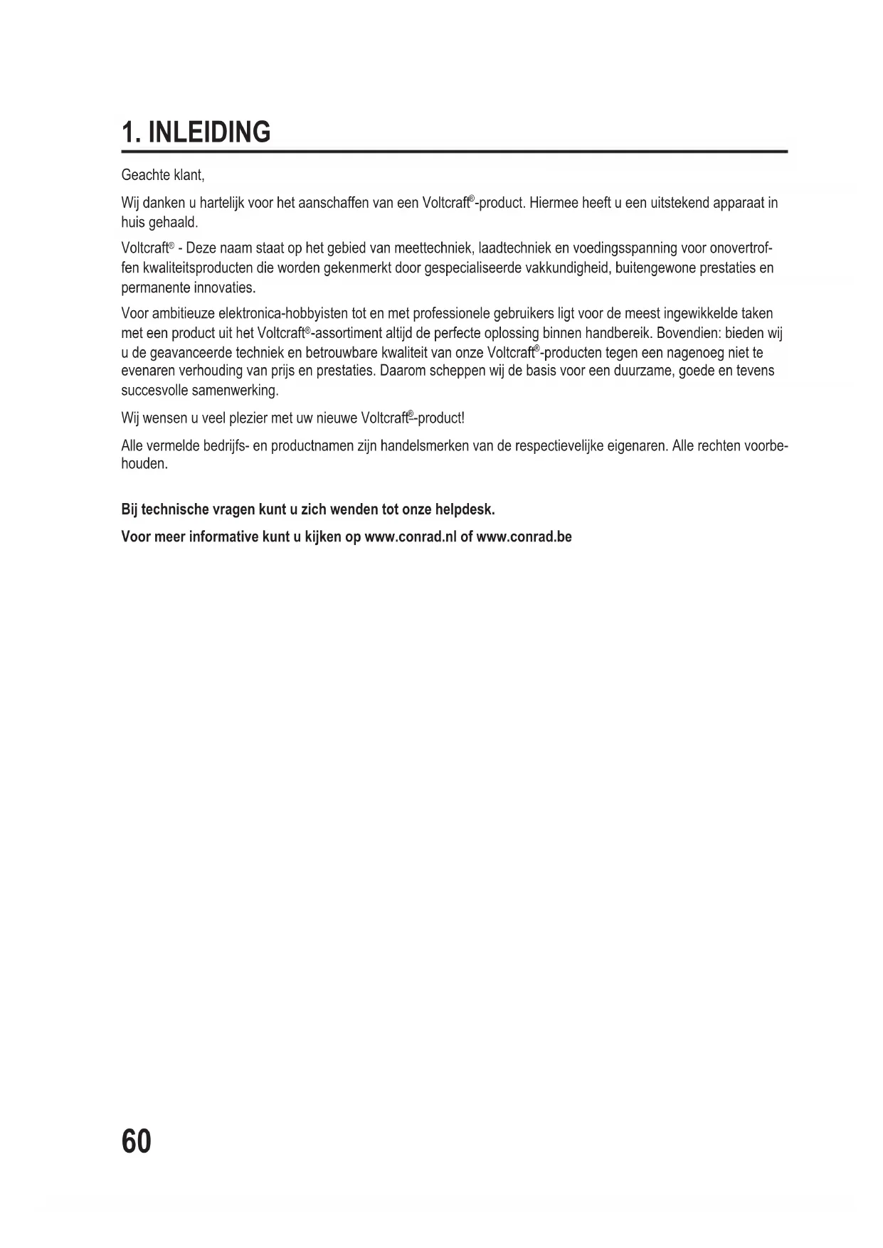 -producten tegen een nagenoeg niet te evenaren verhouding van prijs en prestaties. Daarom scheppen wij de basis voor een duurzame, goede en tevens succesvolle samenwerking. Wij wensen u veel plezier met uw nieuwe Voltcraft