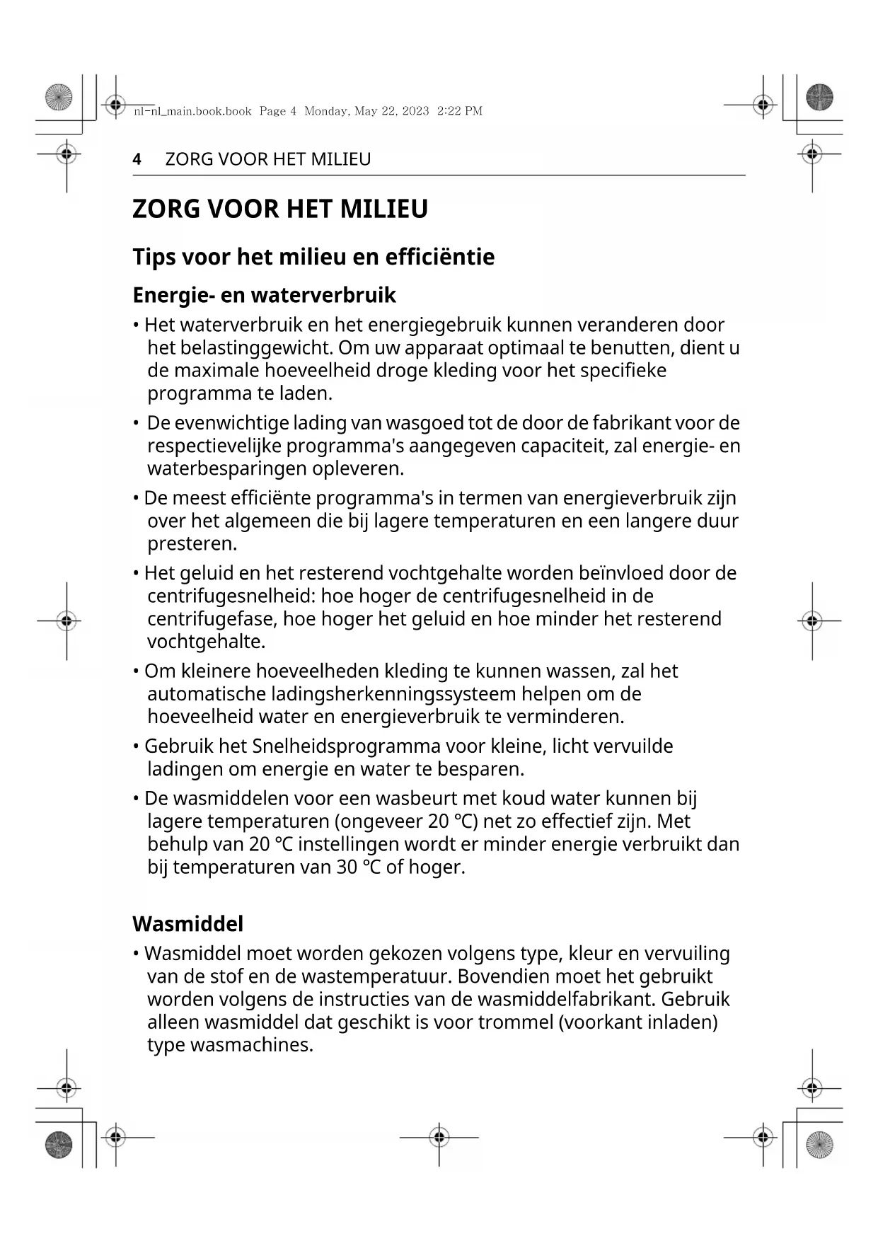 - Wasmiddel moet worden gekozen volgens type, kleur en vervuiling van de stof en de wastemperatuur. Bovendien moet het gebruikt worden volgens de instructies van de wasmiddelfabrikant. Gebruik alleen wasmiddel dat geschikt is voor trommel (voorkant inladen) type wasmachines. nl-nl_main.book.book Page 4 Monday, May 22, 2023 2:22 PM5