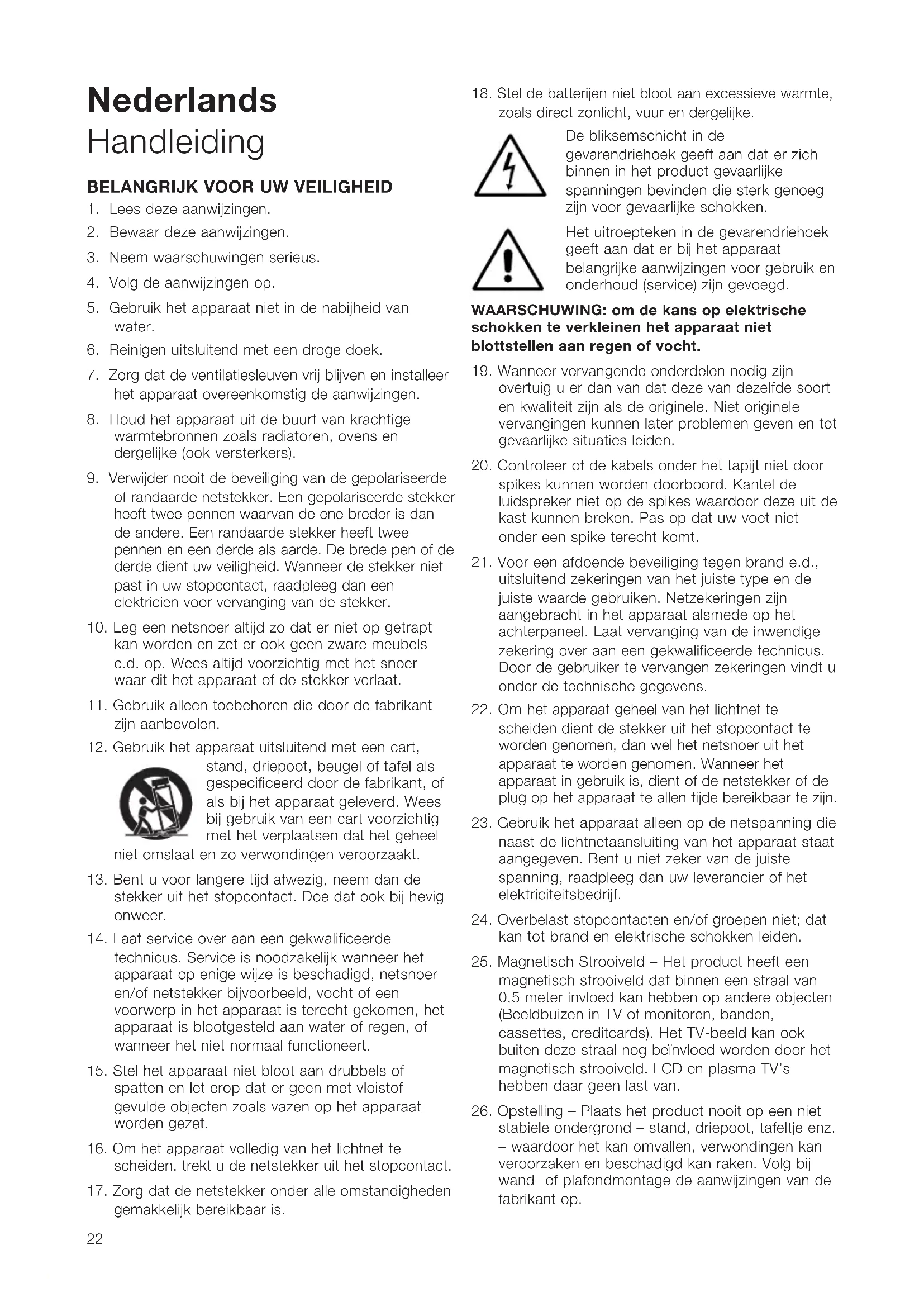 12. Gebruik het apparaat uitsluitend met een cart,
