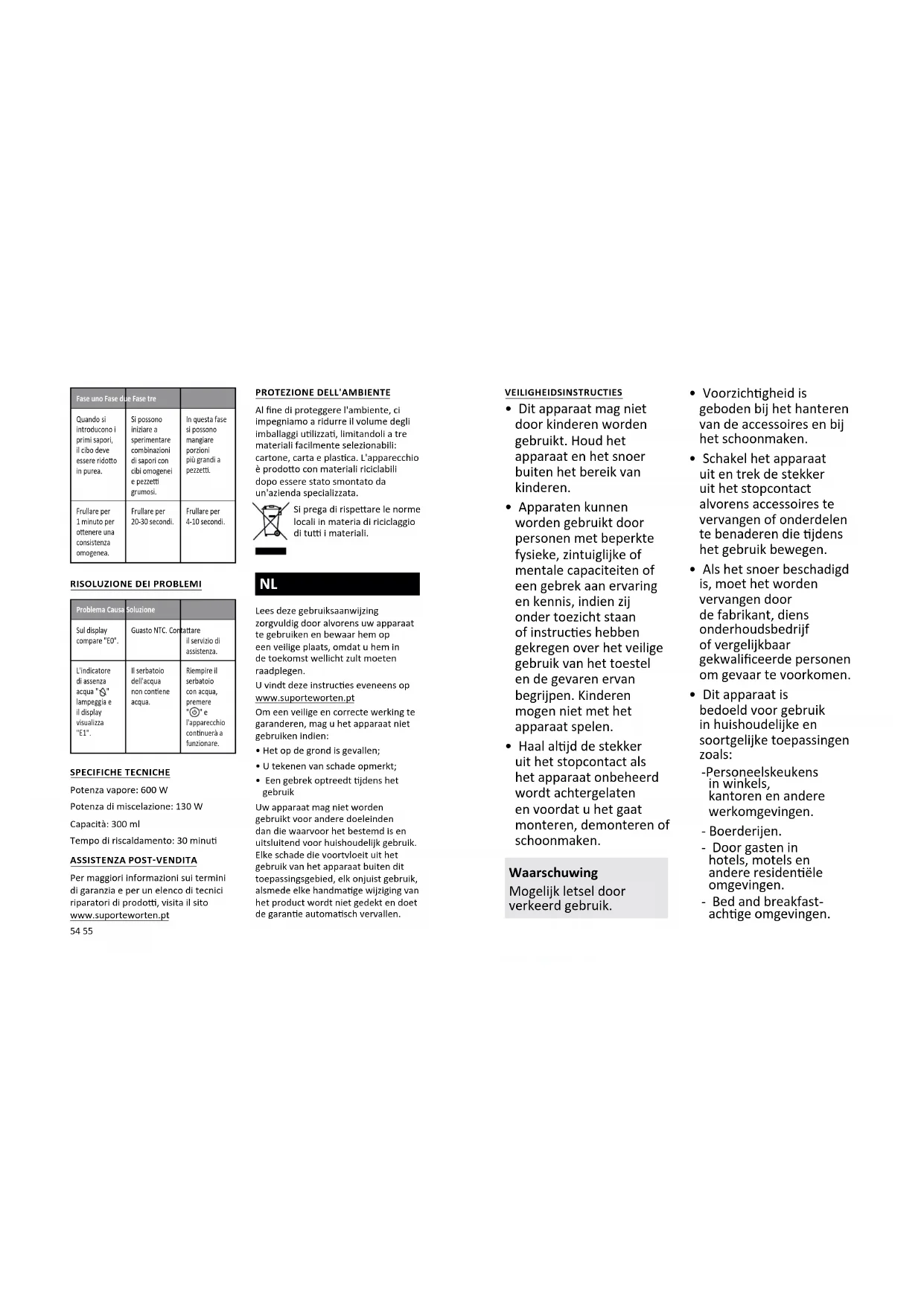 ” en het apparaat blij werken. TECHNISCHE SPECIFICATIES Stoomkracht: 600W; Mengkracht: 130W Capaciteit: 300 ml Verwarmingsjd: 30 minuten KLANTENSERVICE Ga naar www.suporteworten.pt voor meer informae over de garanevoorwaarden en een lijst van productreparateurs.