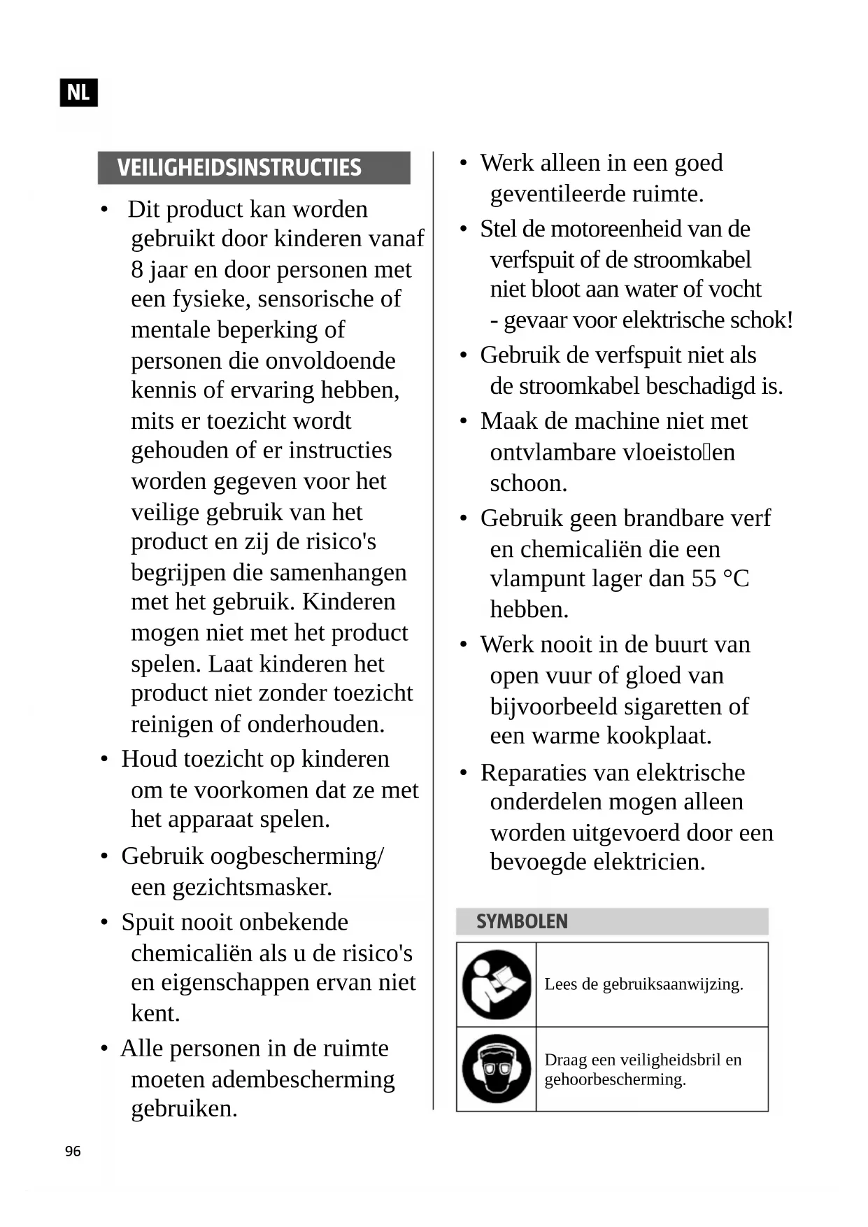 volg de instructies voor de voorbereiding van het spuiten.NL