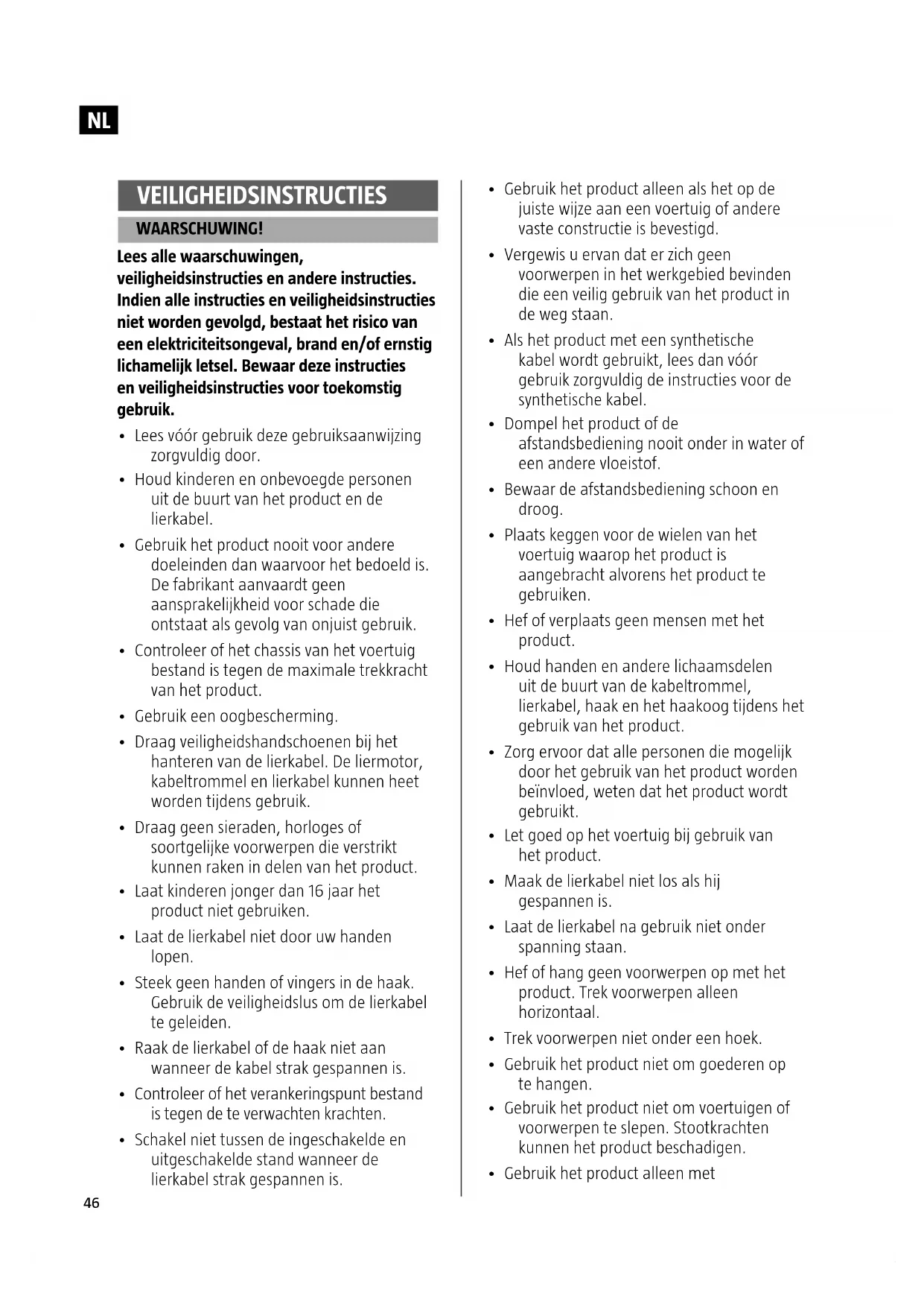 - Laat de lierkabel na gebruik niet onder spanning staan.
