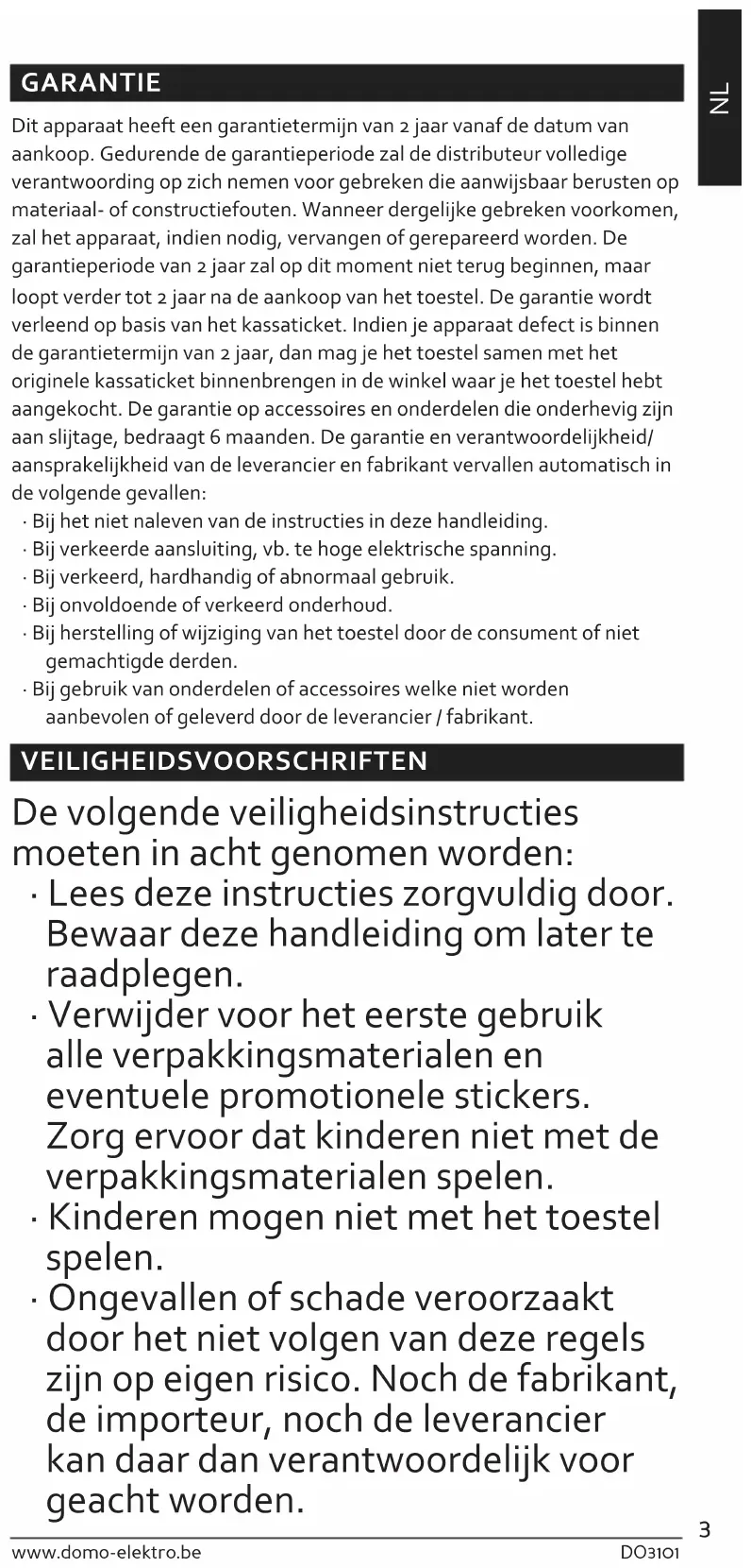 GEBRUIKSAANWIJZING DO3101 DOMO
