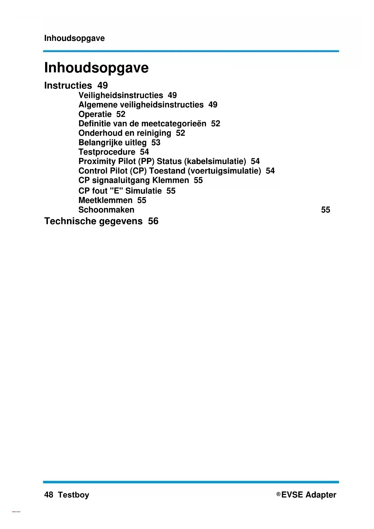 EVSE Adapter Gebruiksaanwijzing 48Inhaltsverzeichnis Testboy