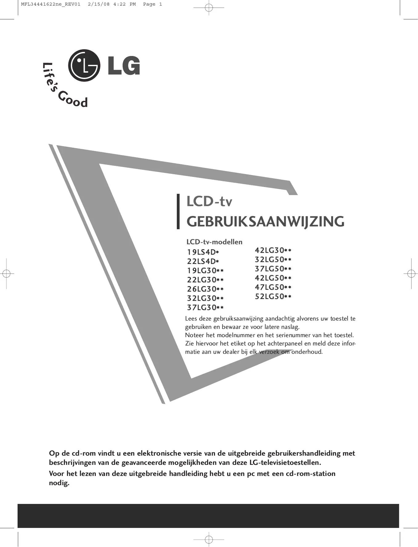 Download de handleiding voor uw Televisie in PDF-formaat gratis! Vind uw handleiding 323000 - LG en neem uw elektronisch apparaat weer in handen. Op deze pagina staan alle documenten die nodig zijn voor het gebruik van uw apparaat. 323000 van het merk LG.
