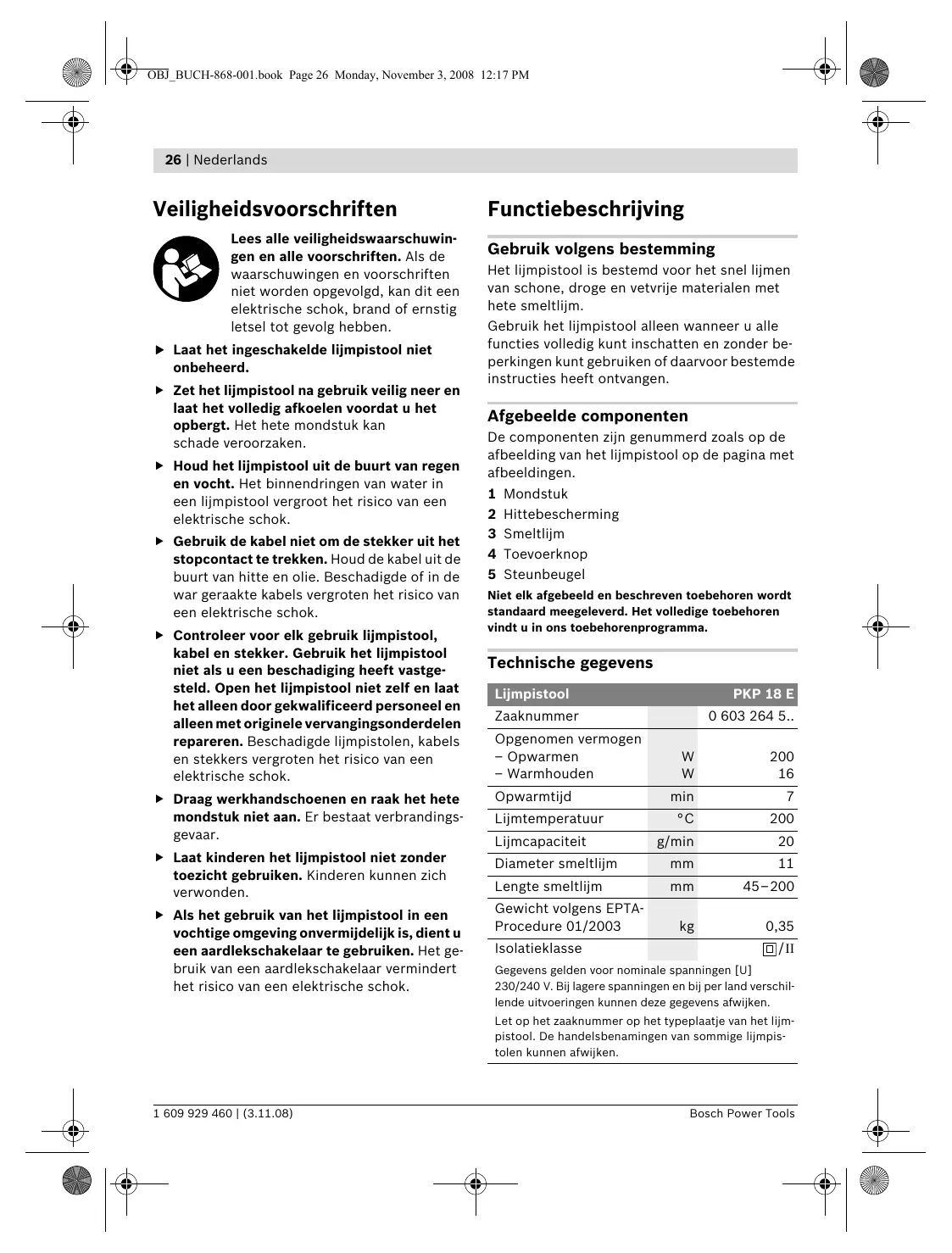 PKP 18 E - REV 11-2008 - Pistolet à colle BOSCH - Gratis gebruiksaanwijzing en handleiding