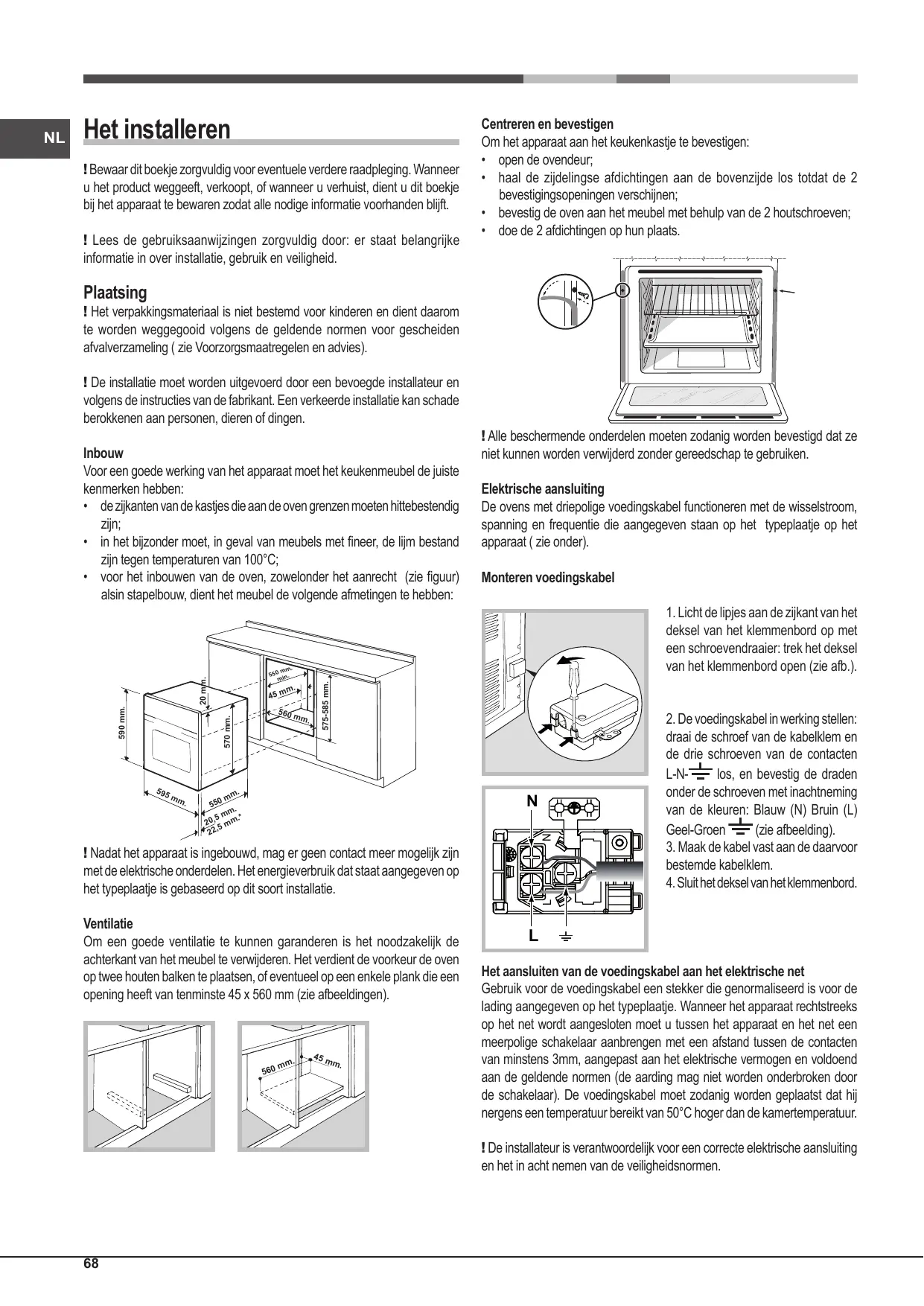 ! Nadat het apparaat is ingebouwd, mag er geen contacteer meer möglichk zijn met de elektrische onderdelen. Het energieverbruik dat staat aangegeven op het typeplaatje is gebaseerd op dit soort installmentie.