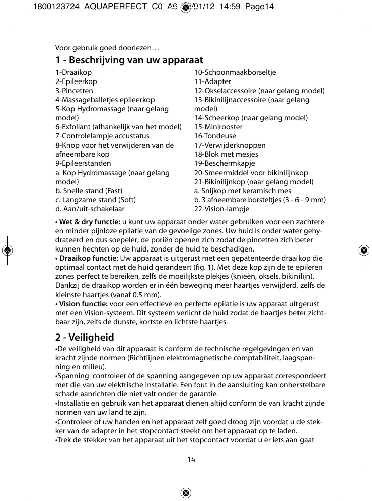 1800123724_AQUAPERFECT_C0_A6 25/01/12 14:59 Page14 Voor gebruik goed doorlezen…