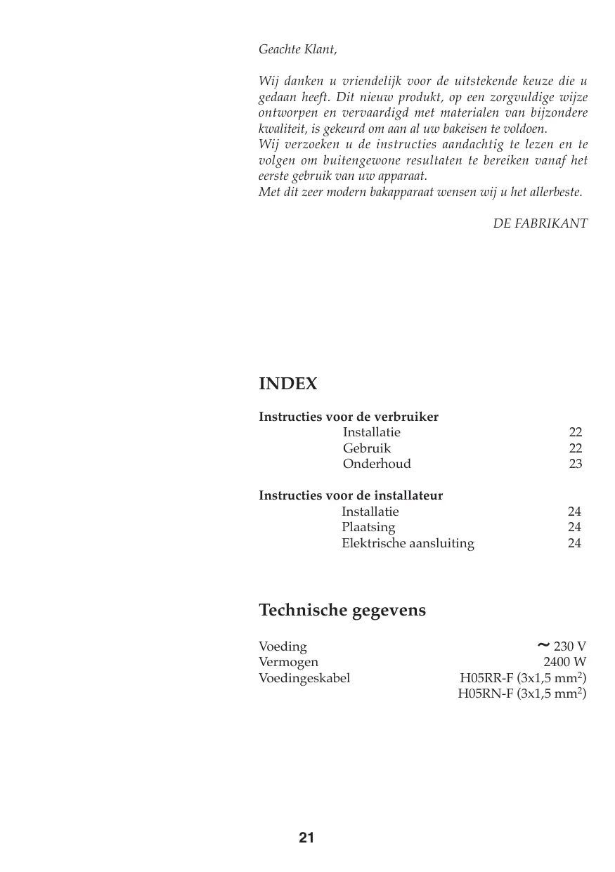 Wij danken u friendelijk voor de uitstekende keuze die u gedaan heeft. Dit/Newu Produkt, op een zorgvuldige wijze ontworpen en vervaardigd met materialen van bijzondere kwaliteit, is gekeurd om aan al uw bakeisen te voldoen.