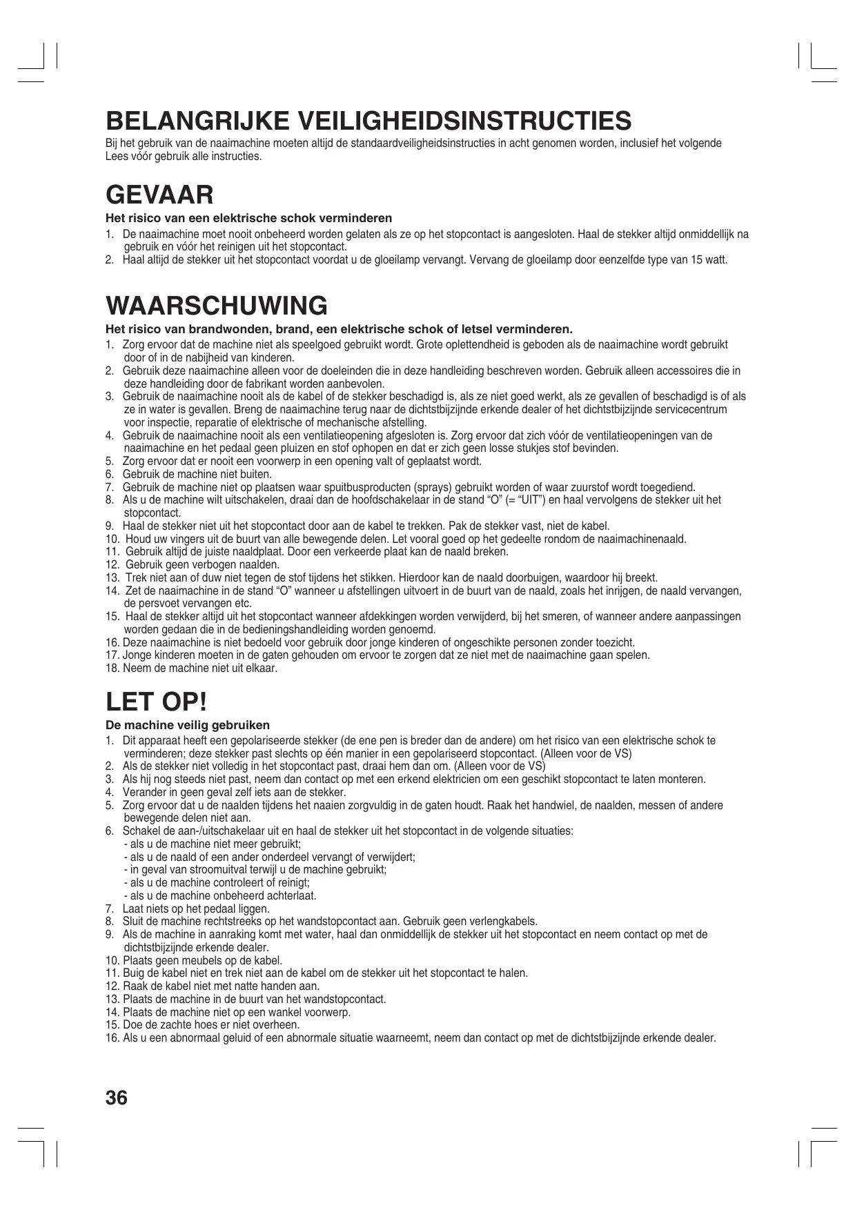 16. Cette machine à coudre ne doit pas être utilisée sans surveillance par un enfant ou une personne handicapée.