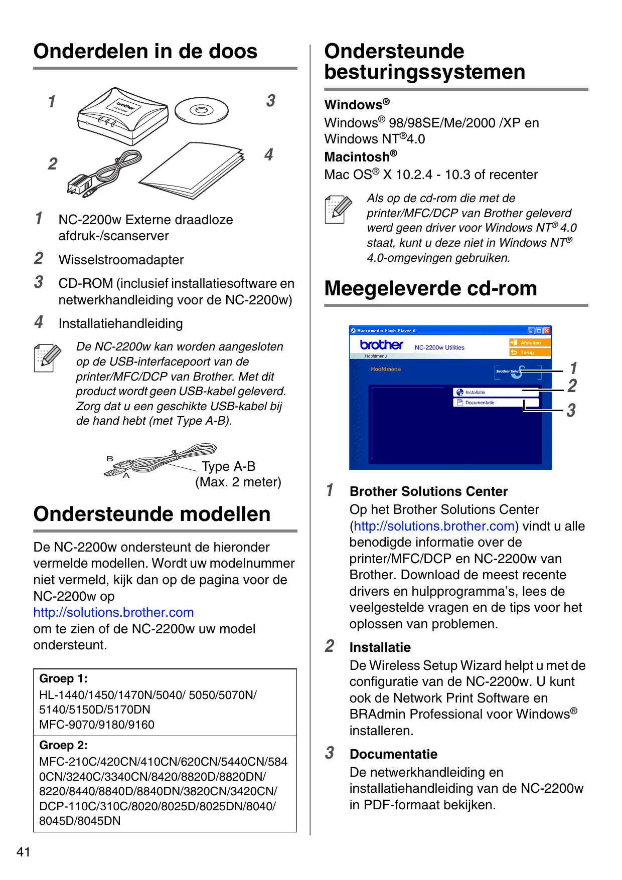 1 Brother Solutions Center Op het Brother Solutions Center {http://solutions.brother.com) vindt u alle benodigde informatie over de printer/MFC/DCP en NC-2200w van Brother. Download de meest recente drivers en hulpprogramma's, lees de veelgestelde vragen en de tips voor het oplossen van problemen.