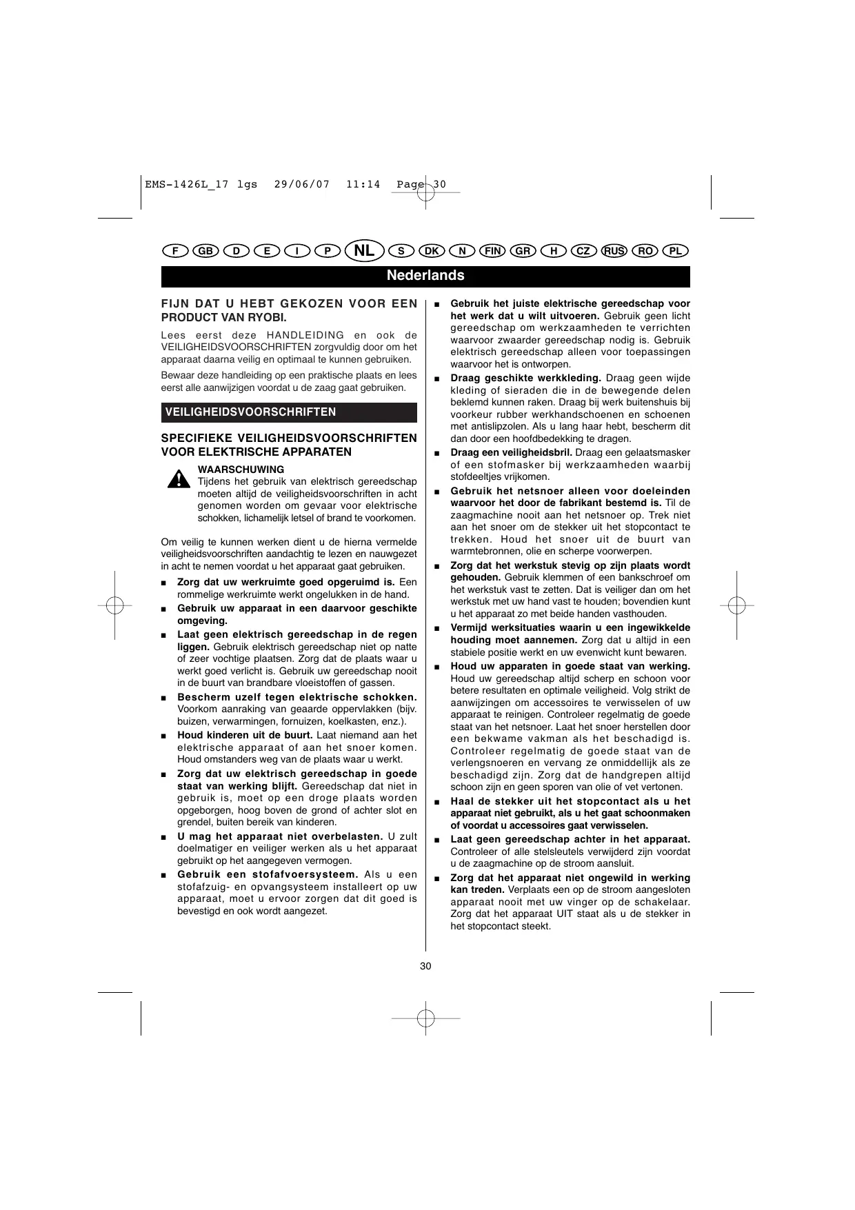 EMS-1426L - Elektrisch gereedschap RYOBI - Gratis gebruiksaanwijzing en handleiding