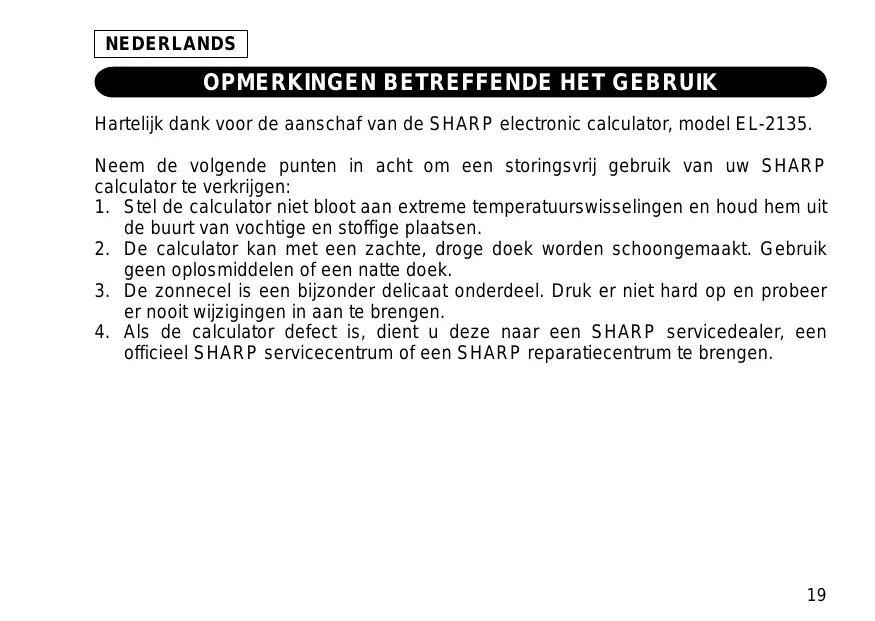GEBRUIKSAANWIJZING EL-2135 SHARP