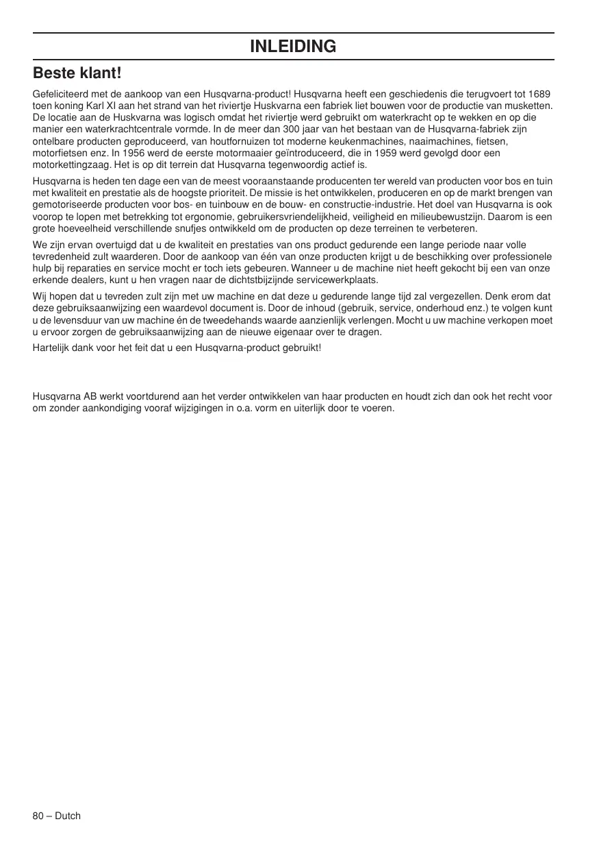 Husqvarna AB travaille continuellement au développement de ses produits et se réserve le droit d’en modifier, entre autres, la conception et l’aspect sans préavis.