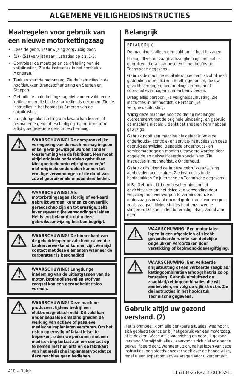 AVERTISSEMENT! Cette tronçonneuse peut être dangereuse!