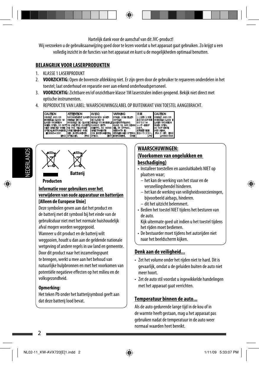10/2/09 6:16:56 pm Hartelijk dank voor de aanschaf van dit JVC-product! Wij verzoeken u de gebruiksaanwijzing goed door te lezen voordat u het apparaat gaat gebruiken. Zo krijgt u een volledig inzicht in de functies van het apparaat en kunt u de mogelijkheden optimaal benutten.