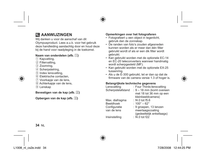 Download de handleiding voor uw Fotolens in PDF-formaat gratis! Vind uw handleiding ZUIKO DIGITAL ED 9-18 MM 1:4.0-5.6 - OLYMPUS en neem uw elektronisch apparaat weer in handen. Op deze pagina staan alle documenten die nodig zijn voor het gebruik van uw apparaat. ZUIKO DIGITAL ED 9-18 MM 1:4.0-5.6 van het merk OLYMPUS.