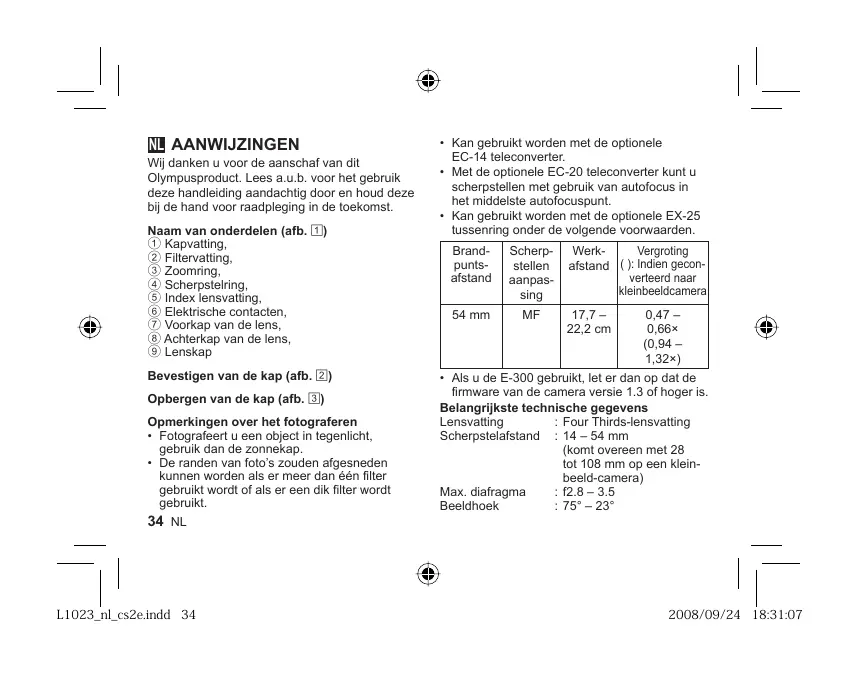 GEBRUIKSAANWIJZING ZUIKO DIGITAL 14 OLYMPUS