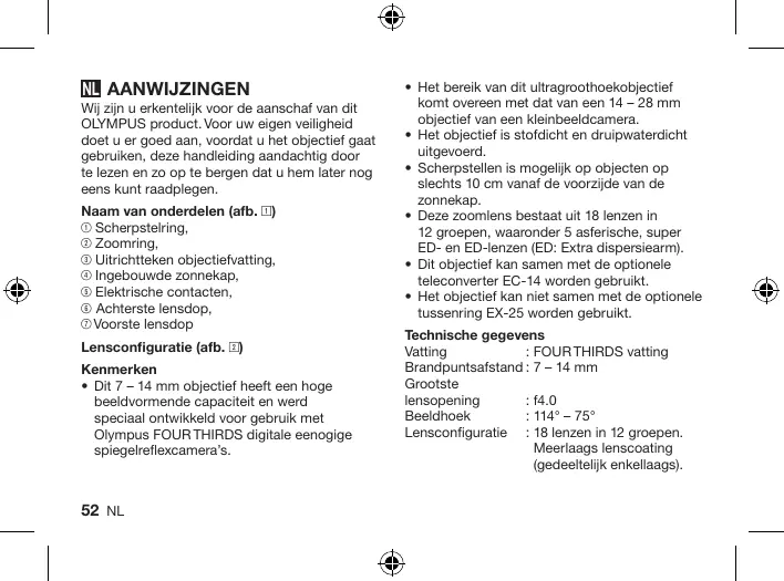 GEBRUIKSAANWIJZING ZUIKO DIGITAL ED 7 OLYMPUS