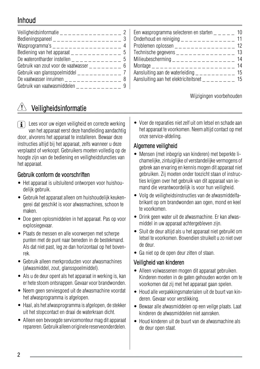 GEBRUIKSAANWIJZING ZDI101 ZANUSSI