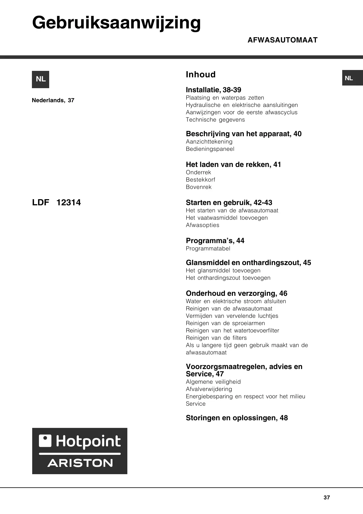 GEBRUIKSAANWIJZING LDF 12314 EU/HA.R HOTPOINT