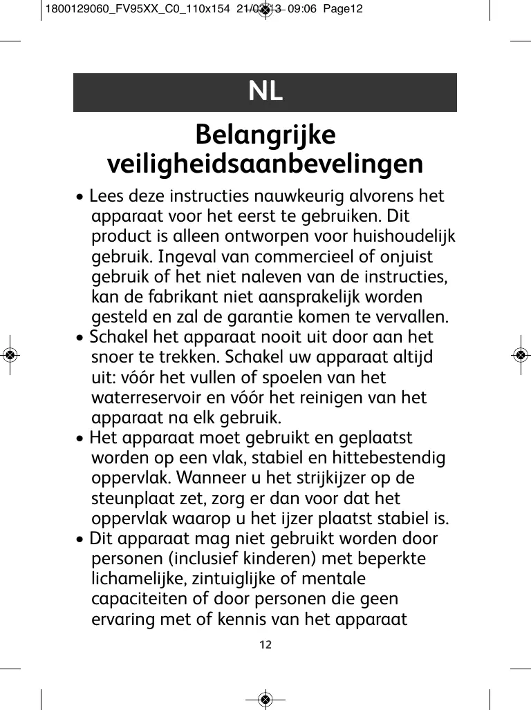 1800129060_FV95XX_C0_110x154 21/03/13 09:06 Page13 hebben, behalve indien een persoon die verantwoordelijk is voor hun veiligheid toezicht houdt of voorafgaand juiste instructies geeft inzake het gebruik van het apparaat.