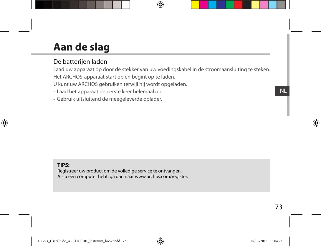 TIPS: Registreer uw product om de volledige service te ontvangen. Als u een computer hebt, ga dan naar www.archos.com/register.