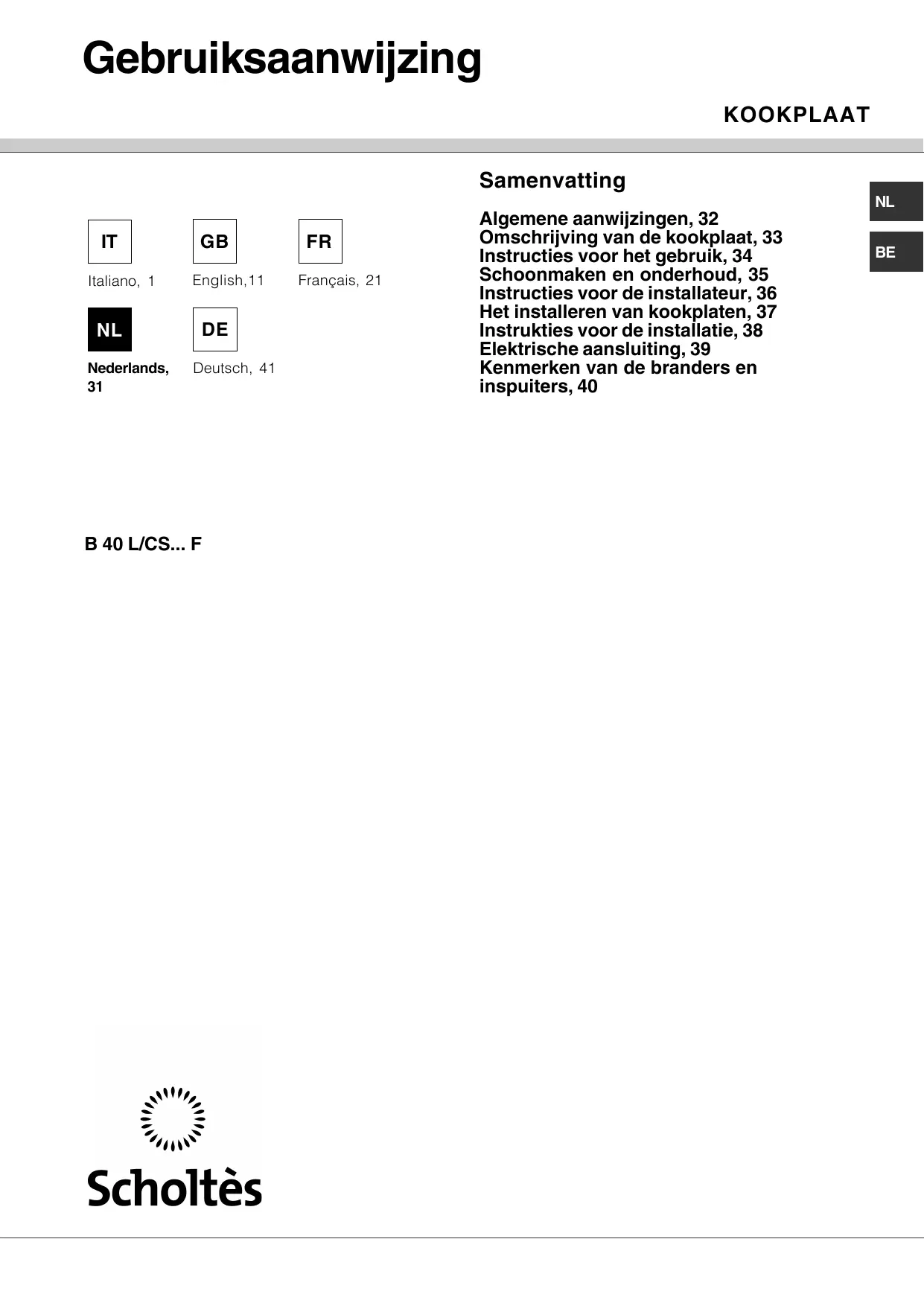B 40 L CS F - Kookplaat SCHOLTES - Gratis gebruiksaanwijzing en handleiding