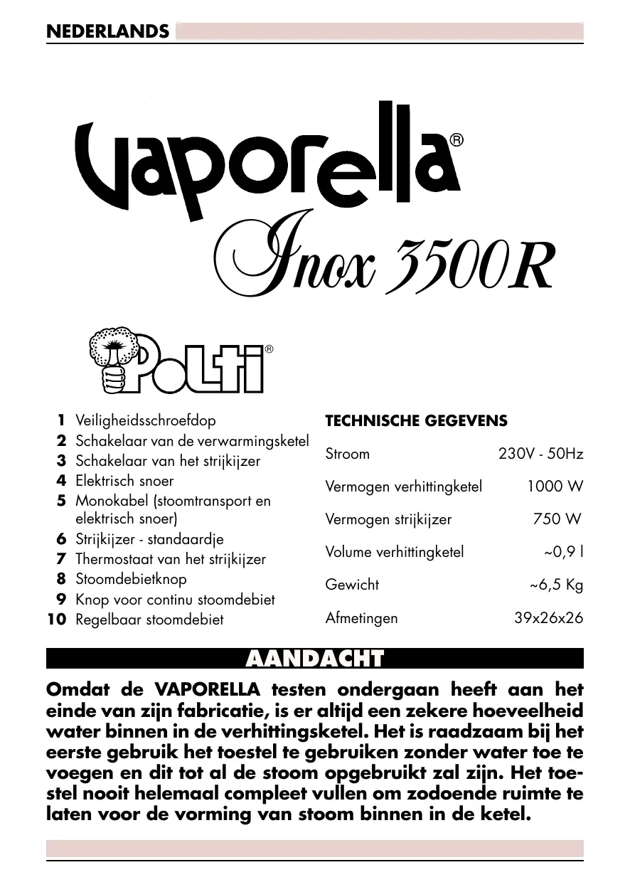 GEBRUIKSAANWIJZING VAPORELLA INOX 3500 R POLTI