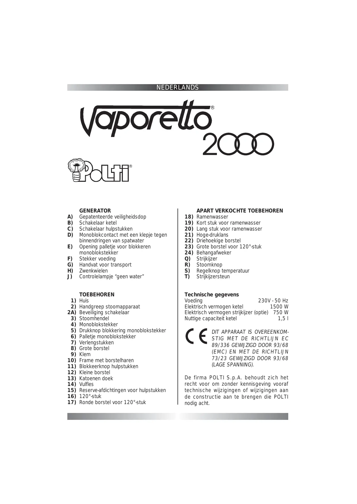 GEBRUIKSAANWIJZING VAPORETTO 2000 POLTI