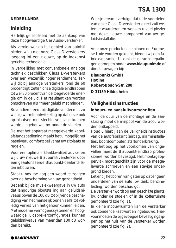 GEBRUIKSAANWIJZING TSA 1300 BLAUPUNKT