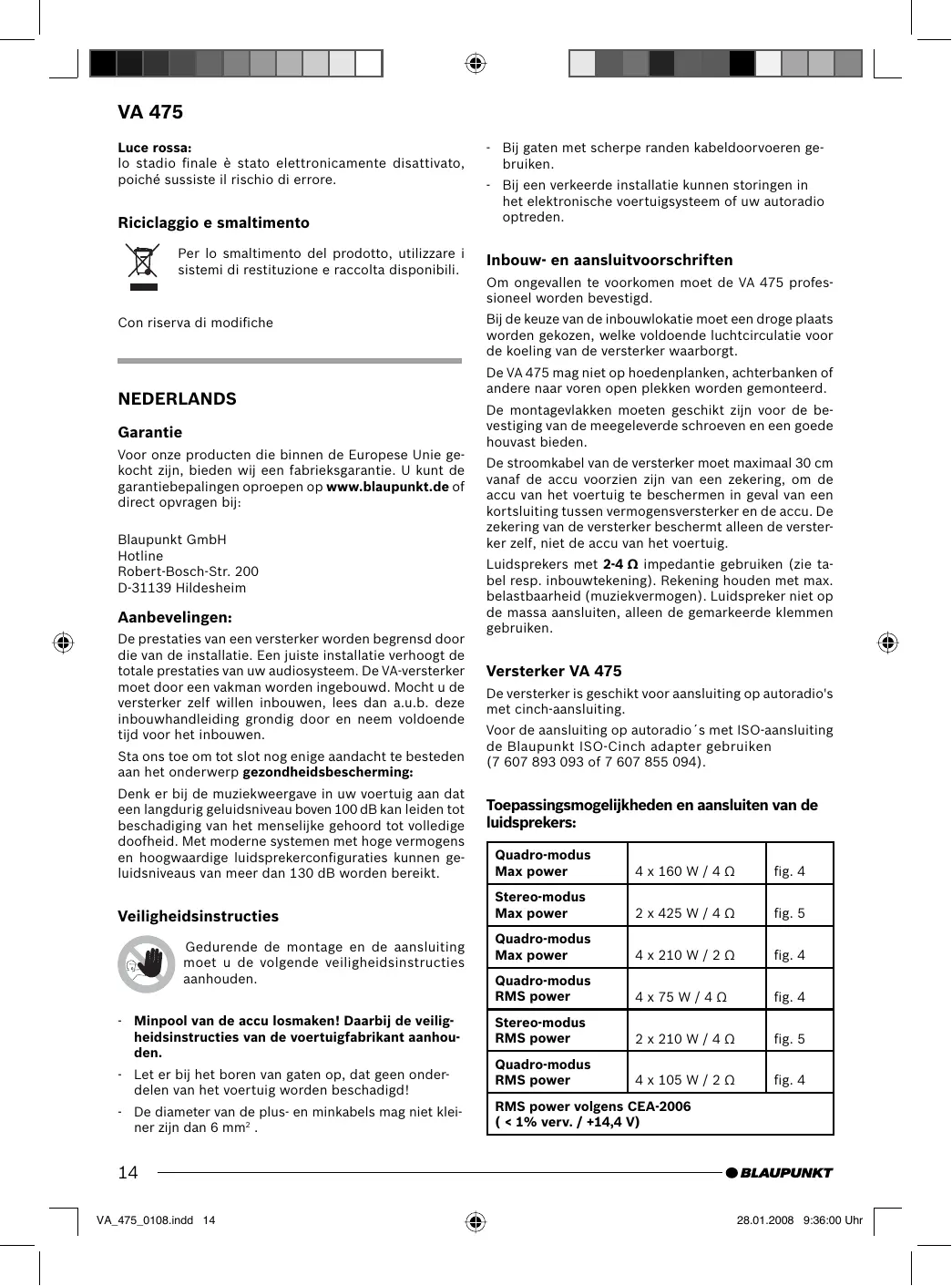 Vind de handleiding van het apparaat gratis VELOCITY VA 475 BLAUPUNKT in PDF-formaat.